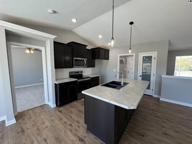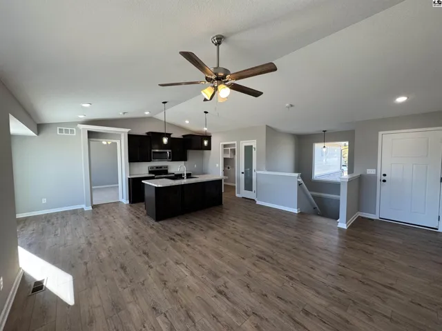 +"PublicRemarks": "Brand new, beautiful and functional!! This property's plan boasts a desirable open floor plan, split 3 bedroom, 2 bath. Just inside the front door you are greeted by an abundance of natural light and vaulted ceiling. The kitchen is complimented by an island with eating bar and walk-in panty. Spacious master suite to include a double vanity, 5 ft shower and walk-in closet. Other features on this new build include a covered front porch, 12' x 10' concrete patio, a 3 car attached garage and full unfinished basement that is framed out with egress windows for future bedrooms 4 and 5 and a roughed-in bath with shower/tub installed. Registered James Hardie home features fiber cement siding and trim that comes with a 10 year Extended Service Commitment covering 100% labor and material costs for any siding or trim issues plus standard 30 year non-prorated siding and 15 year non-prorated trim warranties. Laminate roof. All measurements are approximate. Prices and features subject to change without notice. Call today to schedule your showing and to learn more!"