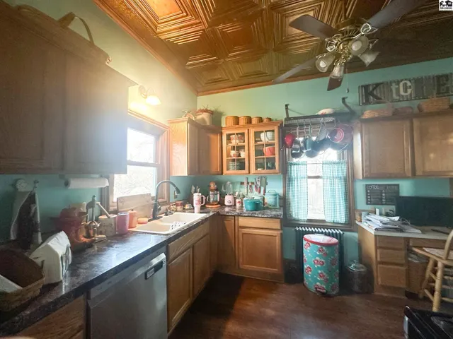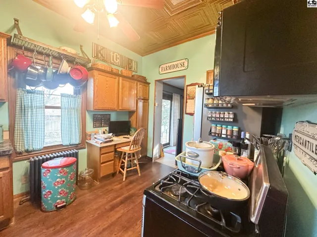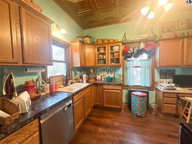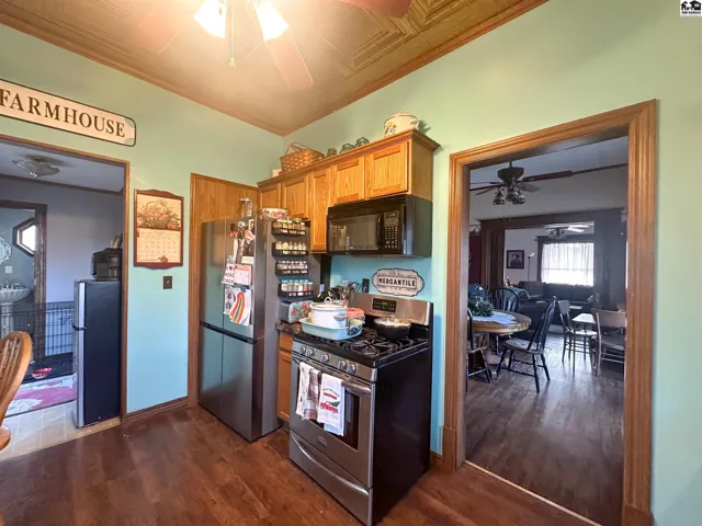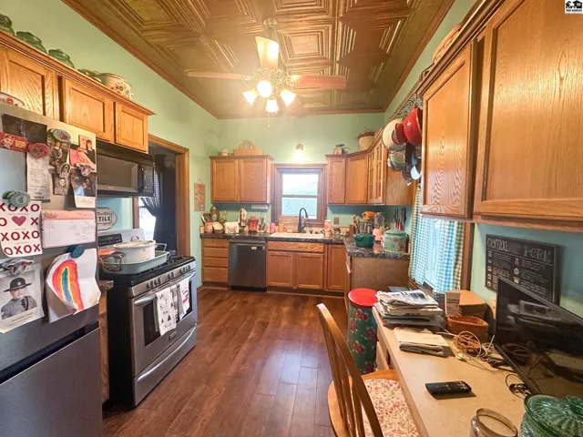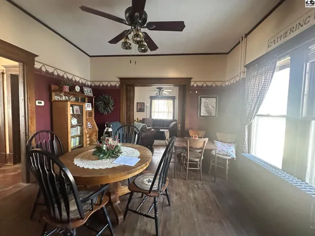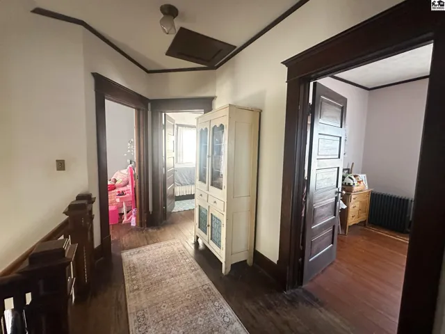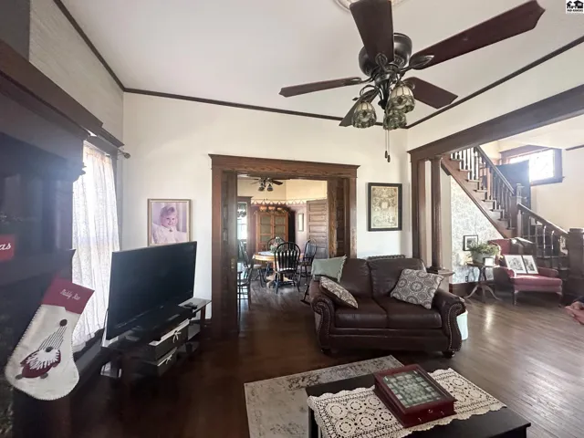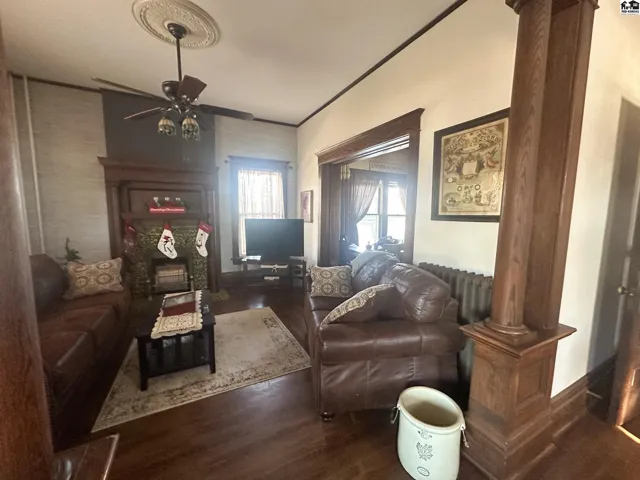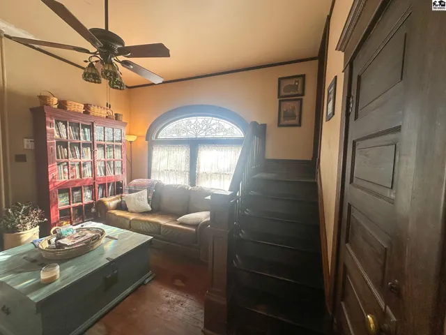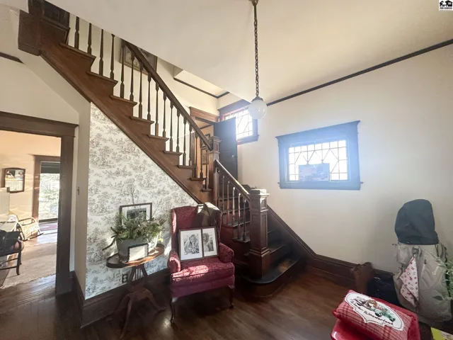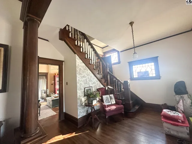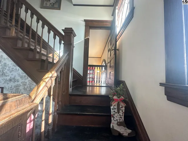 +"PublicRemarks": "Gorgeous Victorian with all the detailed character...with potential for even more! Main floor offers grand open staircase, original entry door, original decorative windows, and original oak floors & is open to living room that offers working gas fireplace, oak pocket doors & is open to formal dining room. Foyer also leads to family room that offers access to open staircase, and STUNNING leaded arched window! Kitchen has been updated recently to include cabinetry, tin ceiling, and replacement windows. Refrigerator, gas stove, microhood, dishwasher all stay. Back entry foyer offers access to half bath, kitchen, family room and back yard. Second level offers four bedrooms each with original wood trim, doors and floors. Primary Bedroom offers original fireplace and mantel. Bathroom has been updated to include an onyx shower, (the original claw foot cast iron tub is stored in the basement. Basement offers laundry room, includes washer and dryer, lots of storage space, furnace room with additional exterior entrance that is extra wide. There is an unfinished room that could be finished into more space. Roof new 2024, refrigerator 2023, washer and dryer 2024. This home is situated on a large corner lot with privacy fenced back yard, nice patio, koi pond, brick sidewalk to garage, & above ground pool. There is also a very nice detached two car garage. Seller will give an allowance for exterior paint."