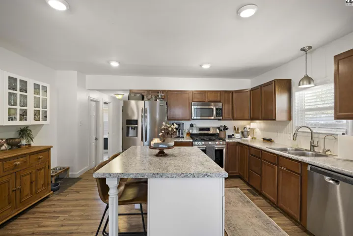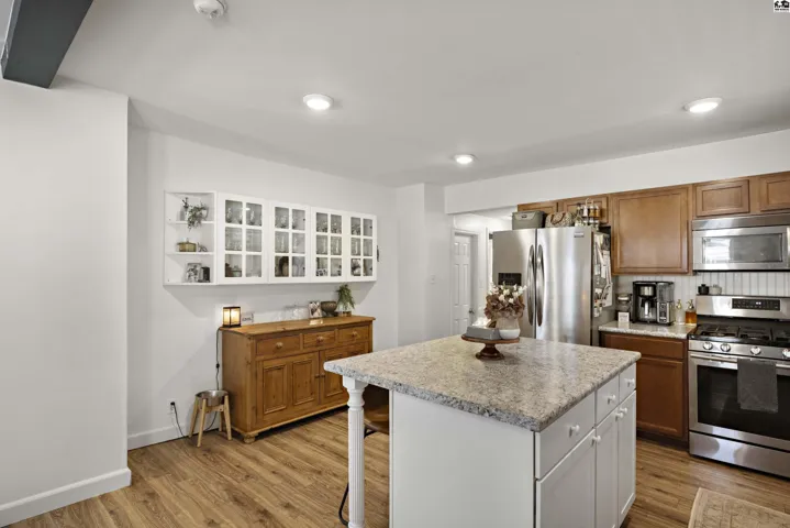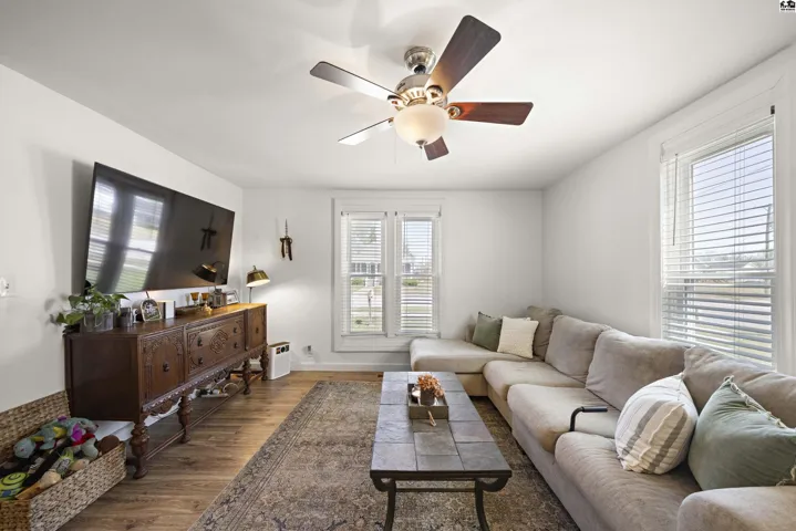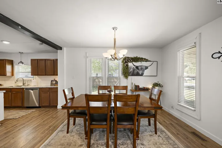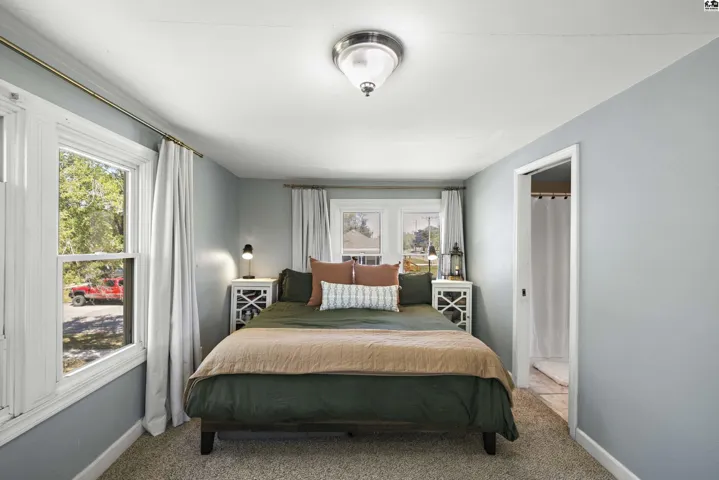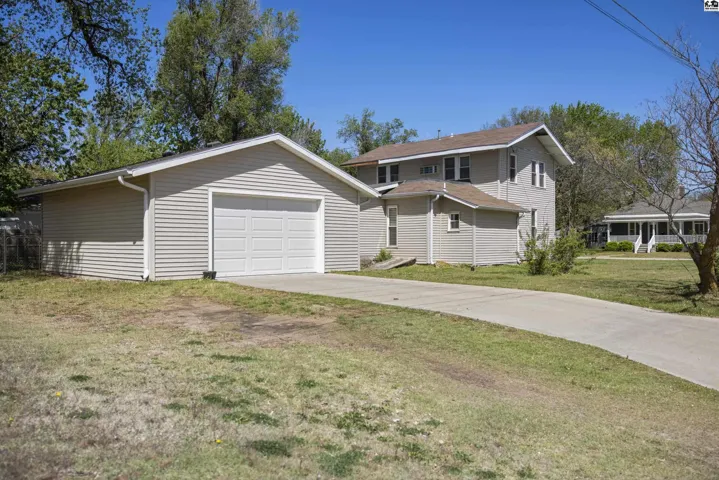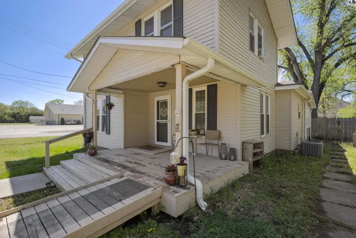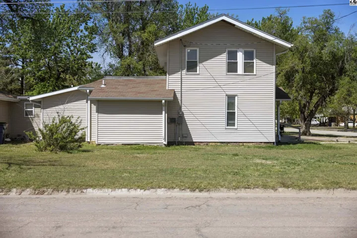 +"PublicRemarks": "Stunningly updated two-story home on the east edge of Sterling, KS!!! Vinyl windows, vinyl siding and TONS of updates throughout! A covered porch welcomes you in highlighting the beautiful, updated flooring throughout and the open concept showcases the large, gorgeous, updated kitchen with a connected dining space leading directly into the cozy living room and tons of light pouring in through large windows! A spacious main floor also includes an en-suite bedroom with an updated bathroom and a SECRET BOOKCASE DOOR!!! Off the kitchen is a convenient half bathroom and a MASSIVE laundry room that can double as an office space! Up the stairs there are two more bedrooms and an updated full bathroom. Out the door of the laundry room is a breeze way to the back deck and fenced in back yard or to the large two car garage! Peaceful green space allows for a private feeling back yard and beyond the fence is an additional lot with SO MUCH potential for expansion! Charm & character combined with thoughtful updates create an oasis in this home! Don't miss this stunning Sterling home!"