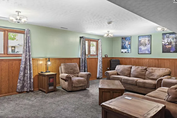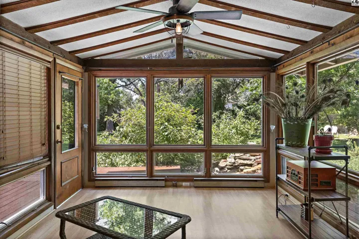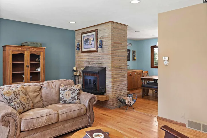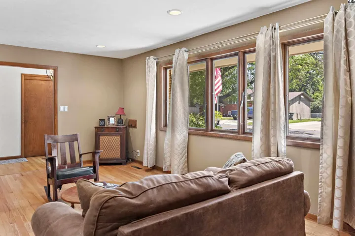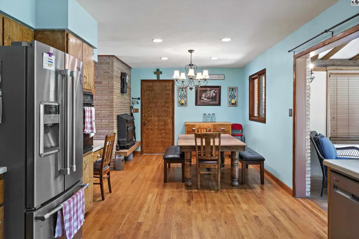 +"PublicRemarks": "Spacious inside and out! This stunning quad-level home is a must see with FOUR bedrooms, 3 bathrooms, TWO living spaces, a 2 car garage, storage galore & A SUNROOM!! The brick exterior, manicured front lawn and landscape invite you up to the front door! As you walk in, the beautiful hardwood floors flow into the large living room which features a picture window and a 2-sided brick wood burning fireplace! On the other side of the fireplace sits the spacious dining room/kitchen with wood cabinets, Corian counter tops and tons of functionality! Off the kitchen /dining is the glassed in sunroom offering indoor and outdoor entertainment space. With beautiful beams along the pitched ceiling and stunning fixtures this will become your new favorite spot to spend an afternoon soaking in the serenity of the beautifully landscaped, extremely private back yard with a water feature! The 2nd floor features a spacious primary bedroom with an ensuite and tons of closet space. Also on the 2nd floor are 2 large bedrooms with great closet space, beautiful fixtures and an abundance of natural light. Just across the hall from the 2 bedrooms is another full bathroom! On the lower level you will find a huge living room with tons of natural light pouring in as well as a 4th bedroom, a full bathroom and the laundry room. The lower unfinished basement offers even more storage! A backyard oasis, gorgeous sunroom, beautiful hardwood floors and 2 huge living rooms all on the northside of Hutchinson!!!"