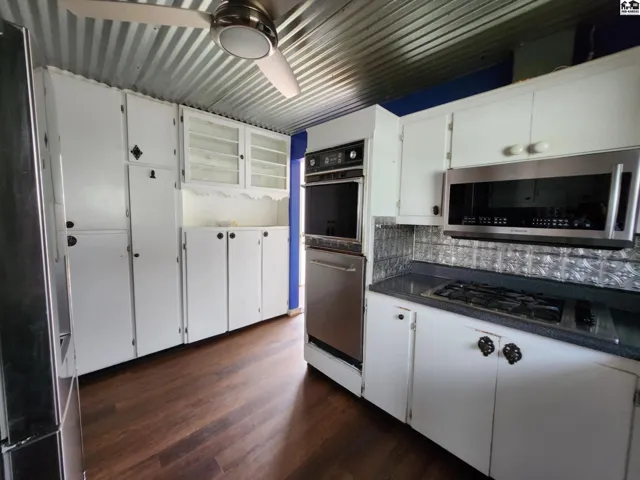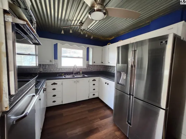 +"PublicRemarks": "Welcome home to a spacious and well maintained 4 bedroom, 2 full bath house in the heart of Hutchinson! A large 3-car garage with alley access will have plenty of space for all your parking needs, with extra workshop space for tinkering, mechanics, woodworking and storage. Two bedroom on the main floor, one with an attached bath; and 2 bedrooms upstairs leaves plenty of room to spread out. Come together at the end of the day in the living room, or large formal dining room, or relax on the front porch swing. A kitchen with full appliances is ready for all your cooking needs, and main floor laundry is located in the mudroom. The basement is spacious and features ample storage, bonus rooms, living areas, and a wet-bar/kitchenette. A 3rd bathroom has been plumbed in the basement but not finished, leaving room for you to build some additional equity! Roof was replaced in 2018, and most systems and appliances have been replaced recently, as well as fresh paint through-out. This spacious home has everything you need to welcome you, and is selling as-is. Come take a look."