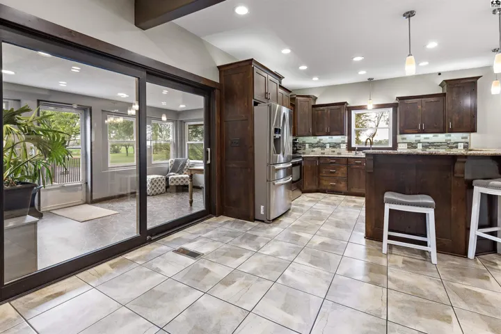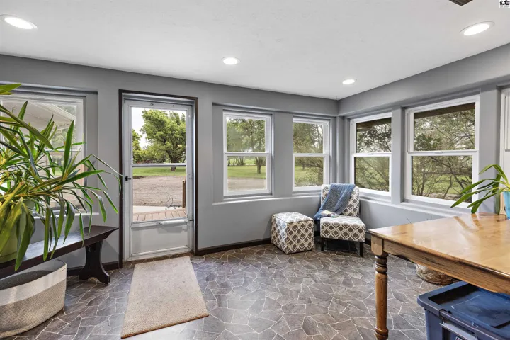 +"PublicRemarks": "This beautifully renovated Farm Home sits on a 2.75 acre park-like compound. This lifestyle adventure boasts not only a stunning 5 Bedroom 2.5 Bath 1.5 story home, you also will own four incredible outbuildings with nearly 9,000 square feet of high quality metal, post frame and metal roof buildings with concrete slab floors and much of this space offers electric, heating, air conditioning, plumbing and more! Begin dreaming of what you might accomplish here! IN THE FARMHOUSE, you will appreciate special touches like granite and onyx, knotty alder custom cabinetry and matching trim, specialty and recessed lighting, large walk-in showers, soaking tub, updated windows plus a sunroom. Tons of light through large windows welcome you in the living space on the main floor and beautiful patio doors off the master upstairs. You get that cozy farmhouse feeling with ALL the BEAUTIFUL UPDATES added by the current owner. The home has an attached large two car garage and a family room in the basement plus bonus rooms. Outdoors enjoy the gazebo and nearby stocked small pond feature, beautiful trees and an oasis of a lawn. Located about one city block off of US Highway 50 and surrounded by a tree-belt, just a few miles outside of Hutchinson and easily accessible with a private drive around the home separate from the buildings. Storage for your Class A / 5th Wheel, your boat and other toys, room for hobbies and more. Ask to see Building Spec Sheet for details on all outbuildings."