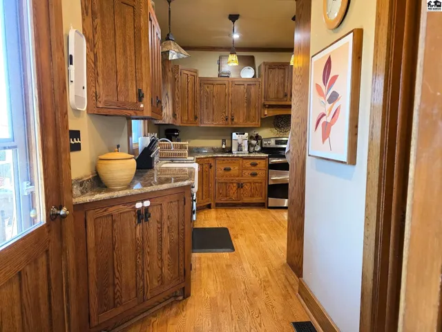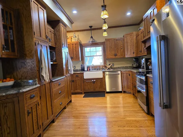 +"PublicRemarks": "Gorgeous Frank Lloyd Wright inspired 1920's home featuring 5 bedrooms and 3 bathrooms with over 3600 sq ft of living space. Beautiful wood floors, crown molding, amazing built-ins, Pocket doors, and a front and back stairway. The kitchen is absolutely amazing, with tons of cabinets, marble counter tops, stainless steel appliances, pull out shelving and the list goes on and on! If you love the coziness of a fireplace this charming home has 2 ---one in the living room and a wood stove in the kitchen breakfast nook. The upstairs is the bedroom level, great if you have kids. Large master bedroom has an updated master bath. And the second bathroom has also been remolded. Another appealing feature is the large, covered porch for relaxing or entertaining. This home truly has it all if you love the charm of the older homes!"