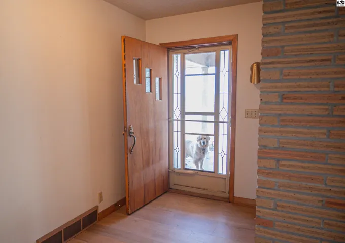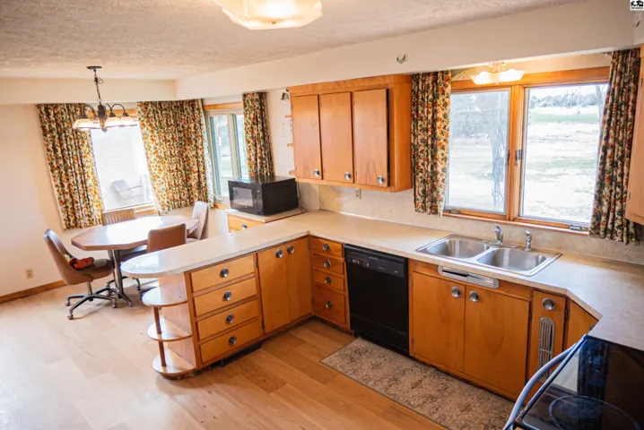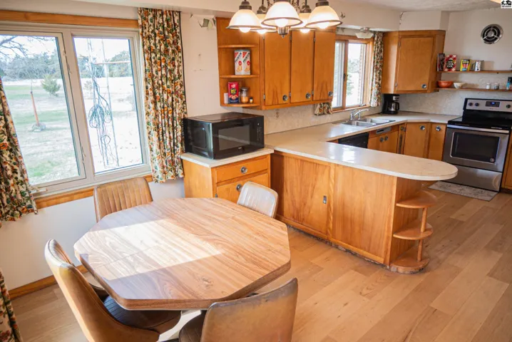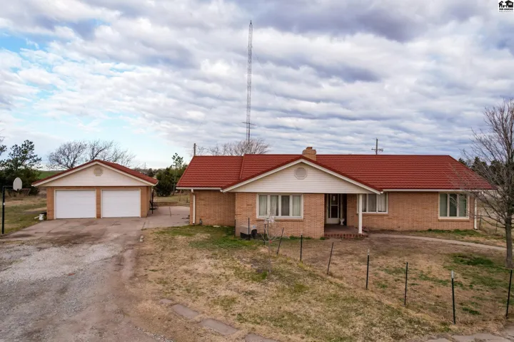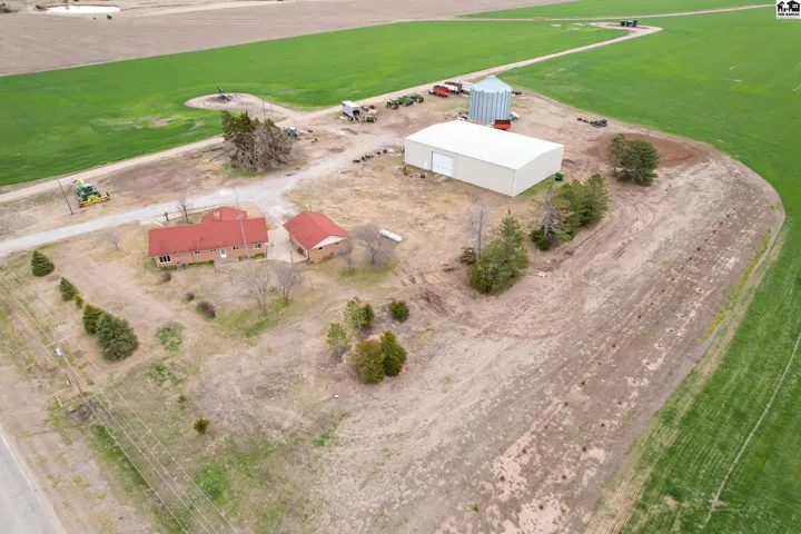 A classic Kansas farm homestead. This 6.5-acre farm homesite is conveniently located off a maintained county blacktop 2 miles off of KS Hwy 156. Built in 1953, this solid brick ranch-style home boasts 1,846 sq. ft. of living space. The kitchen opens to the dining room and living space, which both showcase walls of picture windows giving natural light with a view of the countryside farm fields. There is a double-story brick fireplace in the living room and basement. There are 3 bedrooms, all with original hardwood floors and one with a cedar closet. The 918 sq. ft. unfinished basement provides plentiful storage and allows easy expansion. The home is economically efficient with a 2018 central air/heating, a brick structure with double sheetrock, and new Pella windows, which all contribute to low monthly bills. There is a 2-car garage with a workspace located directly next to the home. The massive 100 x 70 ft machine shop was built in 2005 with an electrical connection and concrete floor in 2/3rds of the shop. Behind the shop is a 35,000-bushel grain bin that was built in 2004. This grain bin has been rented out for the last few years, providing the owners an easy side income. The western boundary of the property has a newly planted shelter-belt for added windbreak and privacy. The home is in a prime location less than 10 miles from Great Bend, 13 miles from Claflin, and 5 miles from Ellinwood.