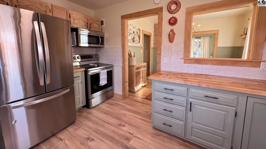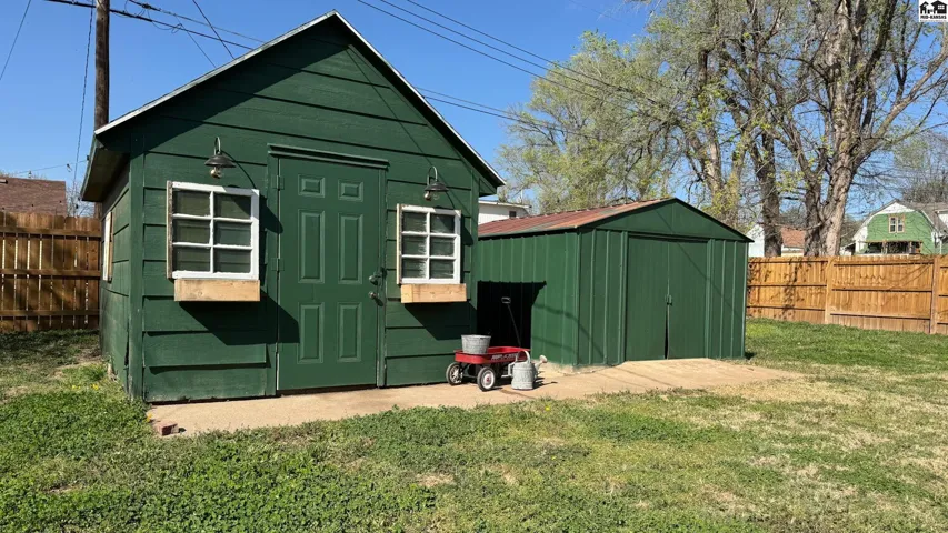+"PublicRemarks": "Take a look at this sharp ranch-style home, all on one level and filled with the owner's pride! Step inside to a spacious living room that welcomes you with warmth and comfort. The updated kitchen is sure to impress with beautiful cabinetry, generous countertop and cabinet space, and sleek appliances. It flows seamlessly into the inviting family room featuring a cozy wood-burning fireplace perfect for family gatherings or quiet evenings at home. This property offers 3 bedrooms and 2 full baths, providing functional space for family guests or a home office. Outside, you'll find a nice covered patio, a large yard with alley access, and a detached shop with tons of potential to bring your vision to life and build equity quickly. The home is located near schools and parks, making it an ideal spot for convenience and comfort. Call for your own showing today."