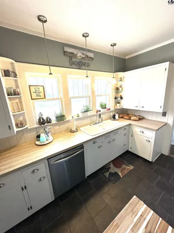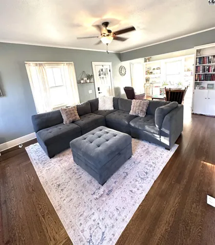 +"PublicRemarks": "This charming 5-bedroom, 2 ½ bath home is a must-see property. Well loved by the current owners, it features modern updates while preserving the traditional charm of the home. A spacious living room boasts beautiful hardwood floors, high ceilings, decorative fireplace & cozy reading corner with built-in shelving. The living room flows seamlessly into a formal dining room featuring a built-in corner hutch, hardwood floors & charming bay window area. The kitchen is equipped with tile floors, stainless steel appliances, abundant cabinet space & pantry closet. The high ceilings & beautiful hardwood floors continue throughout the 3 upstairs bedrooms. The spacious master bedroom has hardwood floors & half bath. Two smaller bedrooms with generous closets can serve as additional bedrooms or in-home office space. A newly remodeled full bath showcases a herringbone tile floor, granite vanity countertop & 6’ long deep soaking tub. Just off the kitchen is a back porch/sun room area leading into the finished basement. The basement provides a large family area with a decorative fireplace & more storage. Also in the basement are two more bedrooms & full bathroom. Rounding off the basement space is a large utility/storage room. The home was updated with a new HVAC & water softener in 2024. The wood-fenced backyard provides entertainment space under a covered patio, large play area for children or space for a garden & a side-yard & detached, oversized 2-car garage."