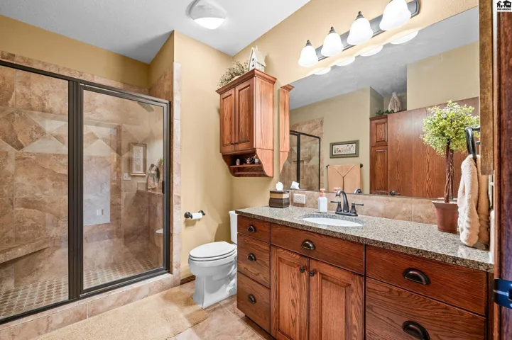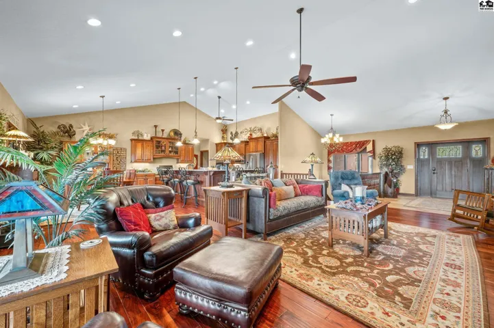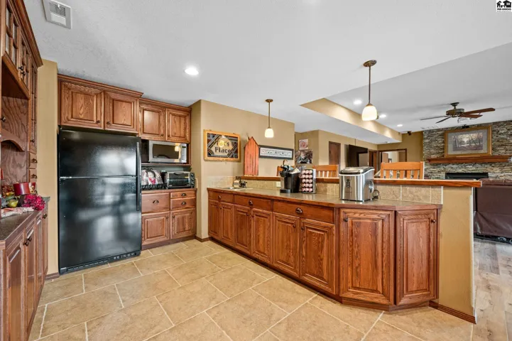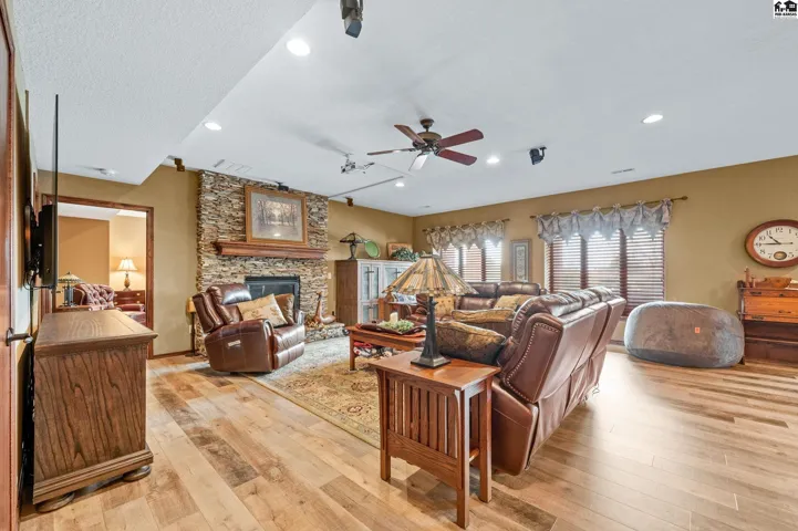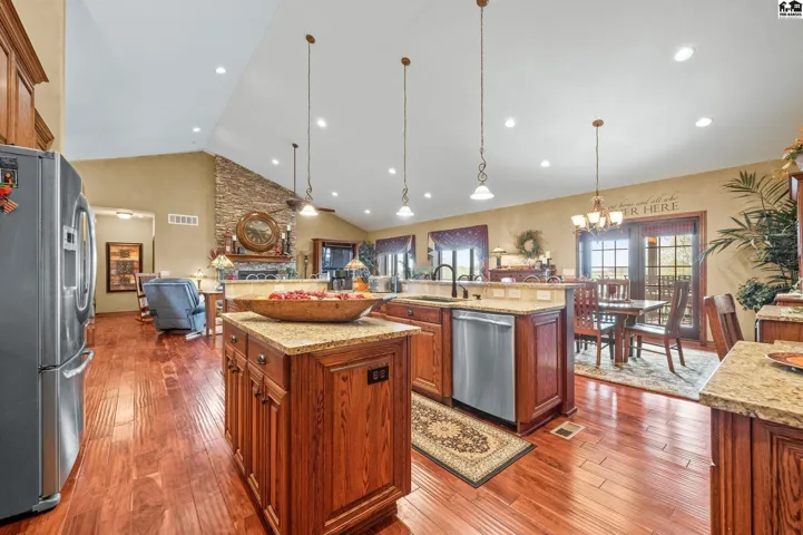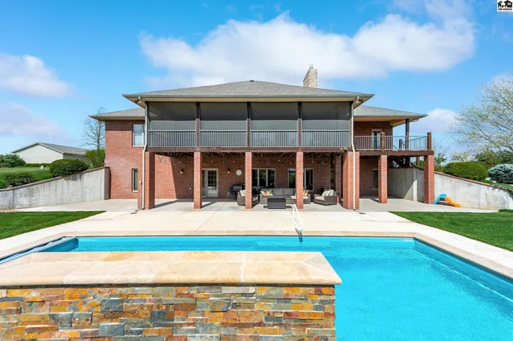 +"PublicRemarks": "Welcome to your dream home! This stunning ranch-style brick home, built in 2009, offers over 5,200 sq feet of luxurious living space on a generous 4.13 acre lot. Just inside from the covered front porch, you will note the abundance of natural light, tall ceilings and an open floor plan that boasts a kitchen with elegant granite countertops, walk-in pantry, center island and well thought out details. The beautiful see thru gas fireplace is a focal point, as are the wood floors. The primary bedroom and primary bath are spacious with the bathroom featuring a walk-in tiled shower, whirlpool tub, walk-in closet, double sink granite countered vanity. The primary bedroom also offers direct access to the back deck. The main floor also features a conveniently located laundry/mud room adjacent to the attached three car garage, a large bathroom and the second main floor bedroom. Downstairs you will discover the walkout basement, designed for comfort and entertainment. With 12 foot ceilings, this space includes two spacious bedrooms, one featuring a walk-in closet, and an office. Additional highlights include another bathroom, conveniently located wet bar, storage room, utility room and a safe room. This home was constructed with efficiency in mind - ICF 12-inch block walls, geothermal heating and cooling, temperature zone control. The property also boasts a fiberglass saltwater pool, screened deck, detached 36x30 shed, full house generator, in-house central vacuum system and more!"
