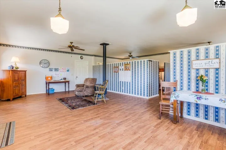 Enjoy the Gorgeous Sunrises/Sunsets and the Peaceful Country Life! Approximately 30 minutes from Wichita! Perfect setting for an Event Center or Camp! Just off Blacktop and Highway 400 with multiple larger cities to draw from! Home on 39.1 Acres with 37 Acres of Tillable Ground, Surrounded by Trees. Custom Built “Barndominium” with Zero Entry level, handicapped accessible, Zoned Mini-Split HVAC Systems and Wood Burning Stove. 2 Bedrooms with Room to build out more bedrooms, 1 Full Bath with Step in Shower – 2 Living Areas, Utility Sink in Mechanical Area, Custom Storm Shelter, Hoop Greenhouse, Storage Shed & Seed Greenhouse with electric. Whole House Water Filter includes a UV Filter. 38×24 Morton Building with Brooder house, Lean-to, Bonus Loft & Insulated Workshop with Solar Powered A/C** 2 Wells – Home & Garden with Drip Irrigation System & 5 Well Spigots throughout the property. Windmill well with Holding Tank for livestock. Fenced areas for livestock, chickens, etc. Established Trees, Lilacs, Ornamental Bushes, Lavender Patch for Pollinators! Beautiful Fruit Orchard, Veg. Gardens, Varieties of Apples, Peaches, Pear, Cherry Trees, Figs, Blackberries, Raspberries & More. Rare opportunity to purchase a one-owner, self-sustaining, established organic farm or make it your vision! Very well-maintained property! 37 acres of Tillable ground that has been a great producer for the