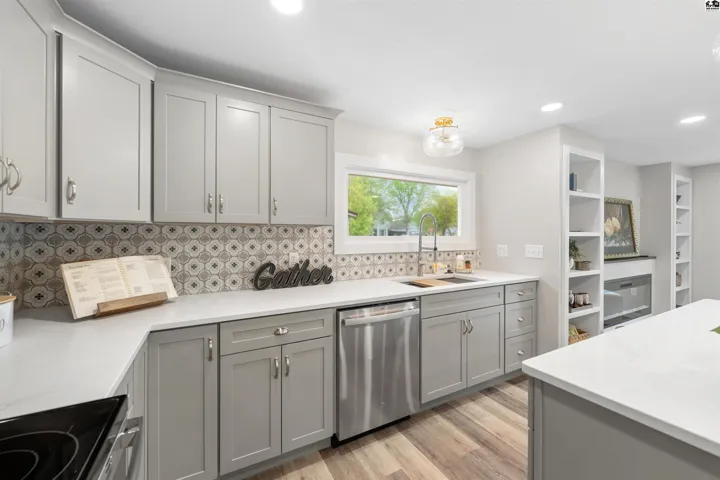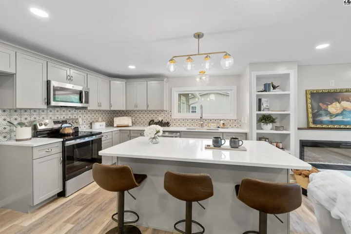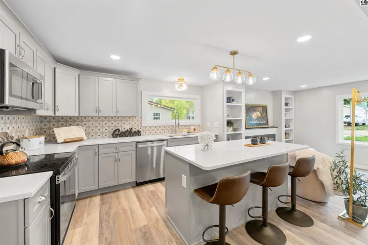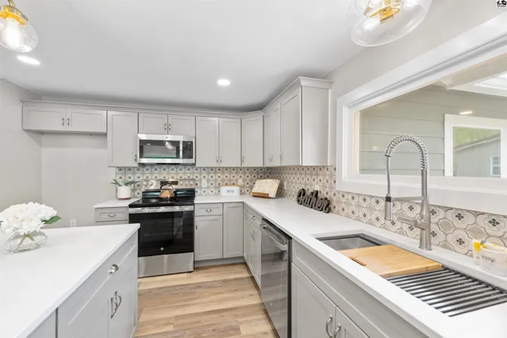 +"PublicRemarks": "**$15,000 Seller Allowance for New Garage** with acceptable offer!!! Talk about attention to detail - you will find it everywhere you look in this fabulous remodel! Down to the studs, and rebuilt from the ground up and outside in. New roof, siding, insulation and windows. New concrete driveway, sidewalks and patio. Beautiful and open living, dining and kitchen spaces. Colorful backsplash, new cabinetry and stainless steel appliances. Large picture window in living room with great natural light, new electric fireplace and built-ins on either side. Front bedroom with en-suite bath, adorable yellow tub and cheery wallpaper. Master suite with custom tile work, double vanities, walk-in shower, built-ins for linens and storage, and stunning walk-in closet. 3rd large bedroom with double closets & additional storage. Mud room/laundry room with custom cubbies, pantry, new electrical panel, PEX plumbing and maniblock system, brand new heater & water heater. Pictures don't do it justice - you are going to want to experience this home in person!"