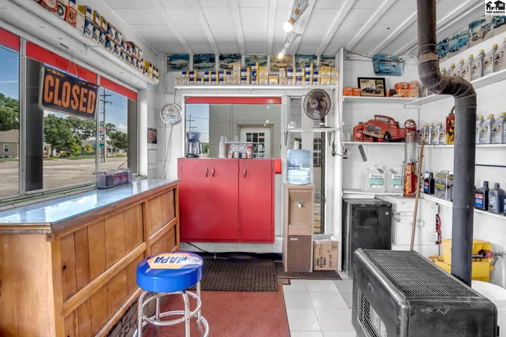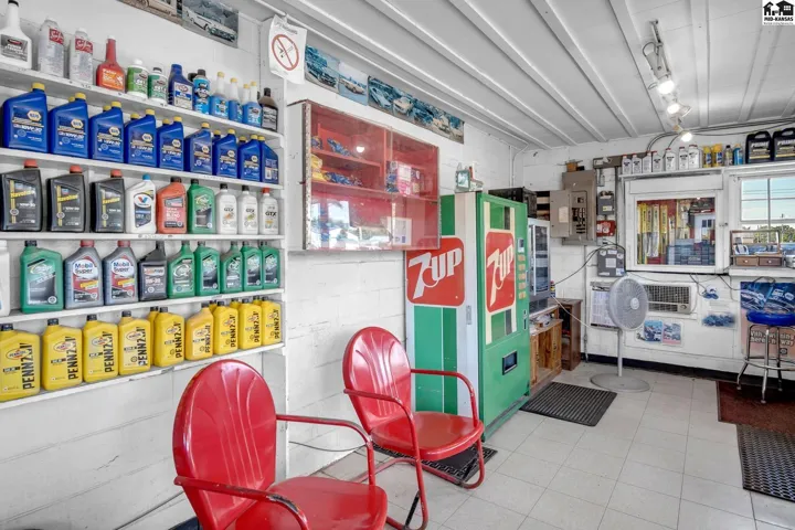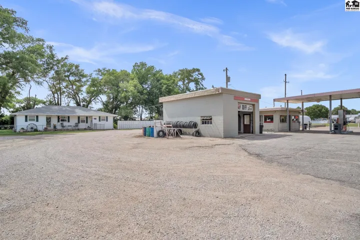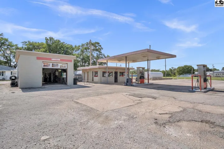 +"PublicRemarks": "This property has many possible uses, last used as a gas station and repair shop. Storage tanks, pumps, lift, air compressor and tire machine remain with property. Also on this property is a 1472 sq ft home with 28 X 36 garage and storage building. The home is listed under residential have it on Zillow and Realtor.com. The roofs are approx 8 yrs old. The property was put in the Kansas trust fund for pollution, KDHE says there is no liability for new owner. Agent has phone numbers to call for verification. Property being sold "as is" subject of inspections. Call for a showing."