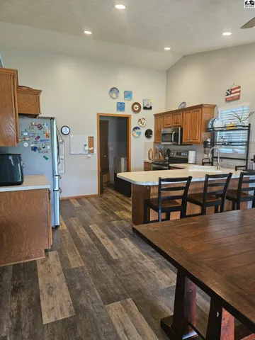 +"PublicRemarks": "If you have been looking for a family sized home, located in a great neighborhood and the Buhler school district, this is the one you have been waiting for!! 4 bedrooms, 3 1/2 baths, over 2500 sq. ft, oversized 2 car garage with additional parking pad, large fenced in back yard with storage shed, and lots of charm! Kitchen with island and large enough for all those great family get togethers. 2 bedrooms and 2.5 baths on the main floor; 2 bedrooms, 1 bath and family room on the lower level. The backyard offers privacy for your family with covered area for your patio set, and very quiet neighborhood."