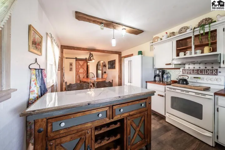 +"PublicRemarks": "Exquisite country property on 4 Acres just minutes from McPherson & Golf Courses. Experience refined country living at its best in this stunning 4,000+ square foot estate, perfectly positioned on 4 picturesque acres just outside McPherson. Surrounded by rolling hills and unforgettable sunsets, this home combines elegant design with the tranquility of wide-open space. Step inside to an inviting open-concept floor plan showcasing rich hardwood flooring. The gourmet kitchen is a chef’s dream—featuring a large island, abundant custom cabinetry, and ample space for both casual dining and entertaining. The adjoining living area centers around a cozy fireplace, creating a warm yet sophisticated atmosphere. The primary suite has been newly remodeled offering a serene escape with luxurious finishes including a heated floors in the bath. The lower level extends the living space with a spacious family and recreation room, kitchenette, and two additional bedrooms—ideal for guests or extended family. Step out onto the expansive covered deck and take in breathtaking panoramic views of the countryside—perfect for evening gatherings or quiet mornings with coffee. Completing this exceptional property is a three-car garage plus a brand-new shop, offering endless possibilities for storage, hobbies, or workspace."