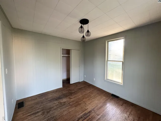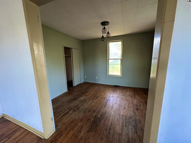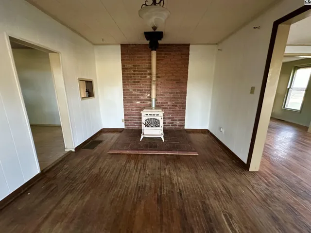 +"PublicRemarks": "This 2 bedroom 1 bath home located in a peaceful neighborhood on a large corner lot. Hardwood floors throughout. There is a wood pellet stove. Bonus room that could be converted to another bedroom. Fenced in backyard and storage shed."
