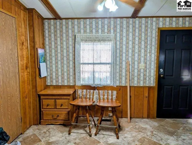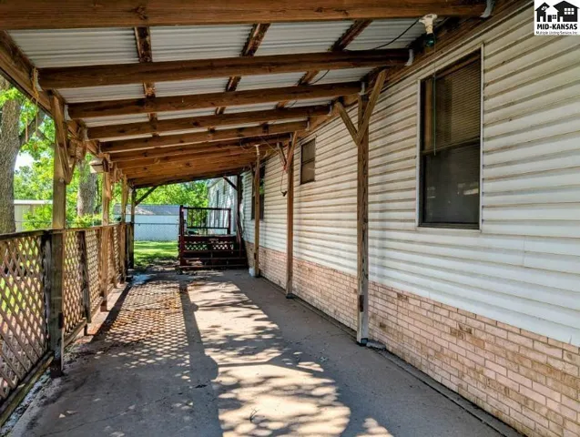 +"PublicRemarks": "NO LAND included with the sale of this mobile home. Lot rent is $415/month and potential buyers need to be approved with Mustang Communities prior to making an offer. This is a 1984 American single wide with 2 bedrooms, 2 bathrooms, living room, den, and kitchen/dining. Some new flooring, all new plumbing and electric water heater in 2023, and a newer AC unit. This home sits on what might be the lot with the best view in Mustang! The exterior features vinyl siding, a carport on both sides (enough to cover 3 vehicles), a workshop area, 2 sheds (one owned by the park), and a deck. The yard has chainlink fencing around it. This one is well maintained!"