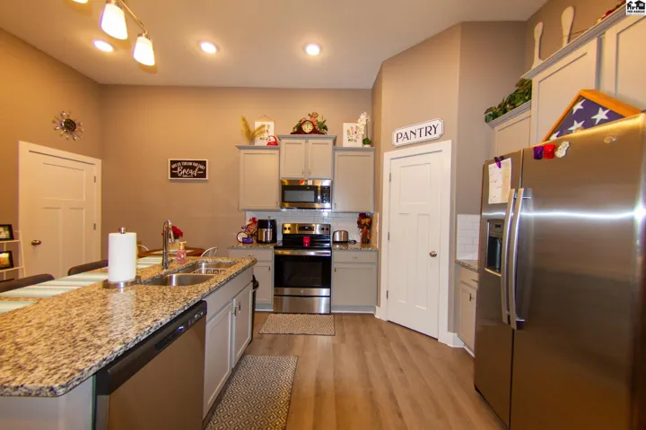 Upgraded Duplex in Maize School District perfect for a 2 income investment property or Live in 1 side and Rent the other. This beautifully done Duplex built in 2021 located in a quiet neighborhood with plenty of parking, features mirror image units each having 3 bedrooms, 2Baths and 2 car attached Garage as well as Smartlap Siding. This home boasts 11′ ceilings, privacy fenced yard, sprinkler system on a well. Finishes are beautifully done with granite countertops throughout, Luxury vinyl flooring throughout, ceiling fans and Wide Enameled White Base Trim. Appliances include Stove, dishwasher, microwave and refrigerator. Don’t miss this opportunity to start your investment journey or add to your existing portfolio. Call to schedule your private showing Today!