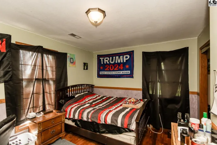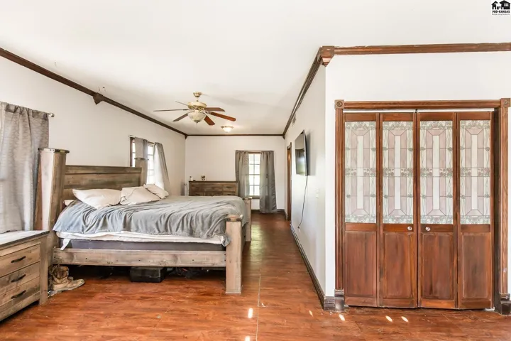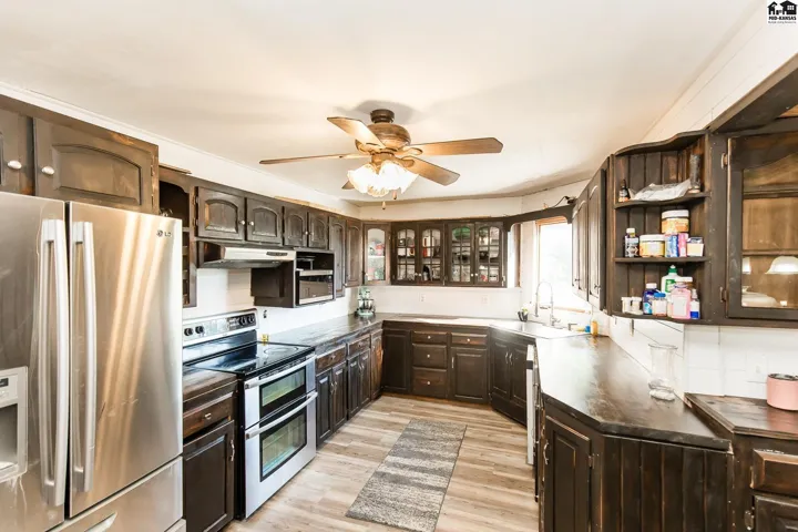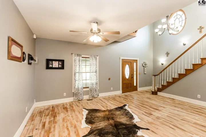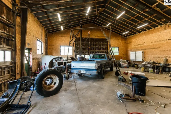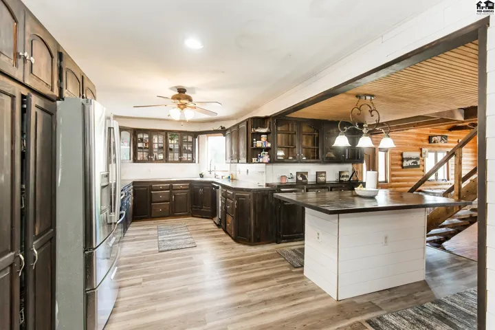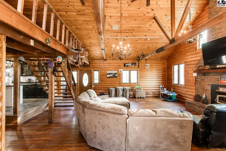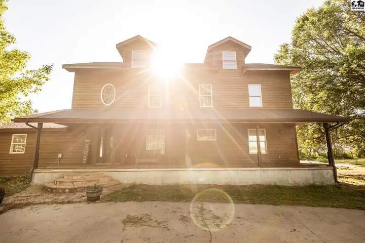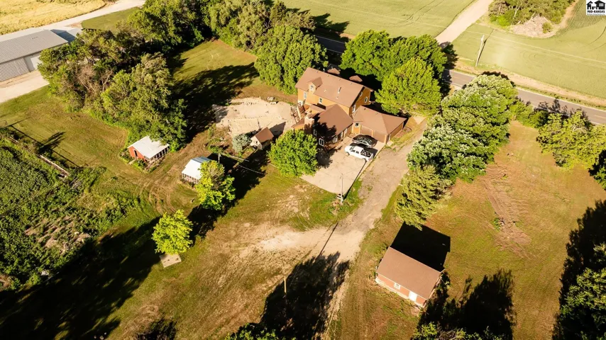 Located on North Plum Street is a beautiful custom home, ready for its next owners. Built in 1996, the home boasts spacious rooms, a wide floor plan and incredible character. The 5,376 square foot house has 6 full bedrooms and 4 bathrooms, attached garage and finished basement. This would make the perfect fit for having several children, visiting friends or a multi-generational family. The rustic charm of the house is undeniable, large exposed beams, vaulted timbered ceilings, and log accent walls in the Great Room are one-of-a-kind. The home has received numerous recent upgrades including new or refurbished flooring, new lighting, fresh painting, a complete bathroom/shower renovation and outdoor decking and stairs. The circle driveway brings you in off the blacktop. The property consists of 8+/- acres is currently being surveyed. It has mature trees and open spaces for livestock. This would be the ideal hobby farm, with rural water line and a good water well piped around the acreage. Multiple loafing sheds, outbuildings, large chicken coops with caged runs and a huge metal shop with concrete floors, electric and overhead doors. The Shop measures 60’x40’ and provides room for all the equipment needed around the farm. There is lots of good fencing, corrals, clean water sources and enclosures ready for livestock. Paved Plum Avenue gets you to 56 Highway quickly and McPherson in no time. This neighborhood is quiet with a wonderful quality of life. Financial verification required