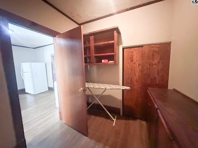 +"PublicRemarks": "Priced to sell quickly! Main floor offers living room, two bedrooms with closet space, spacious kitchen updated with oak cabinetry & laminate floor, laundry room adjacent offers lots of storage, and closet that separates the HVAC & water heater. There is a bonus room that offers a closet and could be used as a play room, office or small bedroom, adjacent is bathroom that has been updated with tub/shower combo, oak sink cabinet and laminate flooring. Back entry offers mud room with closet and storage. Windows are vinyl double pane windows. A few minor touches would make this a very nice affordable home! Call to see today!"