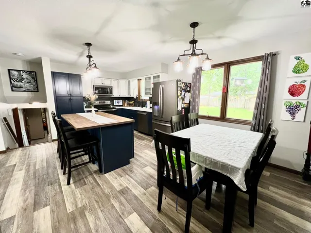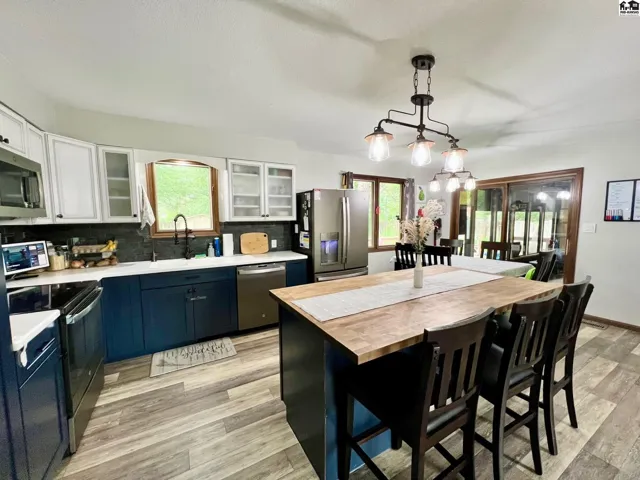 +"PublicRemarks": "Spacious, Updated Quad-Level Home in NE Hutchinson! This updated home offers 4 bedrooms, 3 bathrooms, and 2,270 sq ft of well-designed living space in a quiet neighborhood. Step into the bright and inviting main living room with large windows and unique ceiling accents. The updated kitchen is a true centerpiece, featuring striking two-tone cabinetry, a large island with butcher block top, stainless steel appliances – including a new oven with built-in air fryer – and views of the backyard. Upstairs, you'll find comfortable bedrooms and refreshed bathrooms. The lower-level family room is warm and welcoming with a cozy fireplace, built-in shelves, and room to unwind or entertain. The finished basement offers additional flexible space for a home office, playroom, or workout area. Recent upgrades include a new HVAC system, providing energy-efficient comfort year-round. Outside, enjoy a large backyard with underground sprinkling, mature trees, and a handy storage shed. Relax or entertain in the screened-in patio, perfect for enjoying peaceful evenings. This move-in-ready home offers the perfect blend of updates, space, and location – close to schools, parks, and amenities."