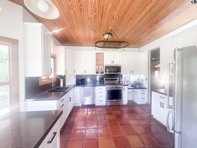 +"PublicRemarks": "A Unique chance to purchase an awesome property on Park Hills Country Club! Main floor offers foyer, living room, dining room all open concept with vaulted wood ceilings, two sets of french doors out to enclosed deck, gas fireplace, coat closet, wood floors recently refinished. REMODELED kitchen includes pantry, appliances, granite counters, tile floor, & access to wraparound porch. Master bdrm suite offers two very spacious walk in closets, master bath, with jetted tub, glass walk in shower, two vanities, recently remodeled & gorgeous. Two additional bedrooms w/nice closet space, main bath offers walk in shower, tiled floor and recently updated. Upstairs offers one huge room with vaulted ceilings, bathroom with walk in shower and walk in closet. Walk out basement was recently remodeled and offers full kitchen, family room, rec room all open concept. Walk out offers sliding doors out to covered patio. Included are all appliances, electric fireplace, pool table w/accessories. There is a bedroom, full bathroom, laundry room that includes HVAC in closet, plus extra storage. Water heater is tankless. There is an attached oversized two car garage, & a two car detached carport. The back yard is fenced with wrought iron fencing. Sprinkler system and circle driveway is approx 3 yrs old. 2.25 Acres on the edge of the country club secluded by trees with plenty of space to enjoy privacy! This property offers private entrance from paved country club road. A perfect setting!"