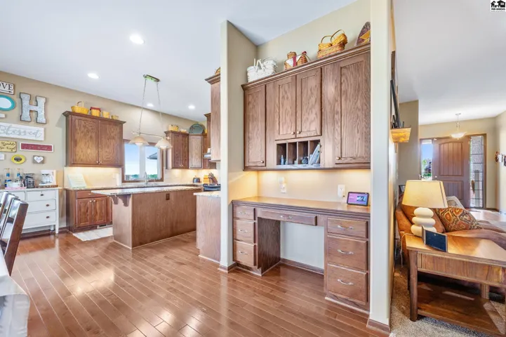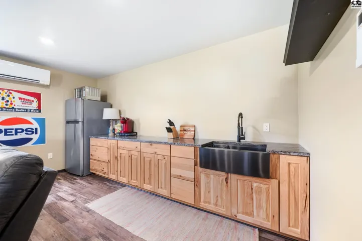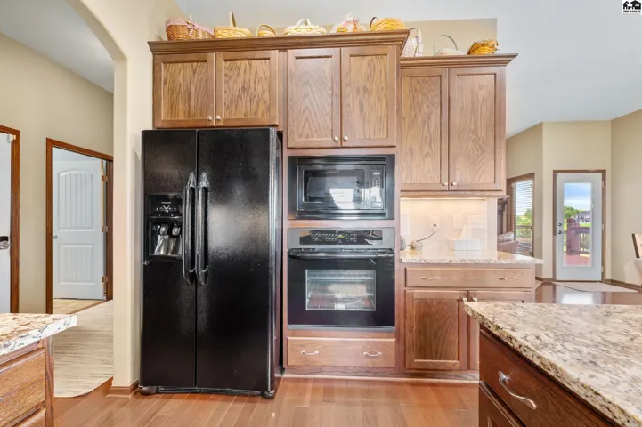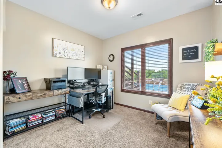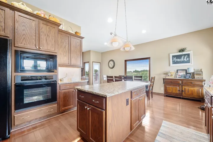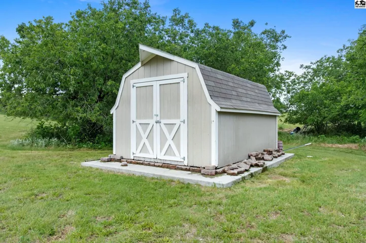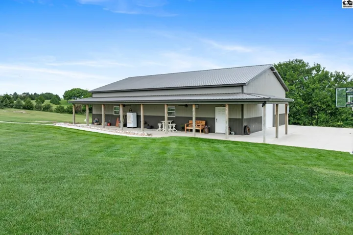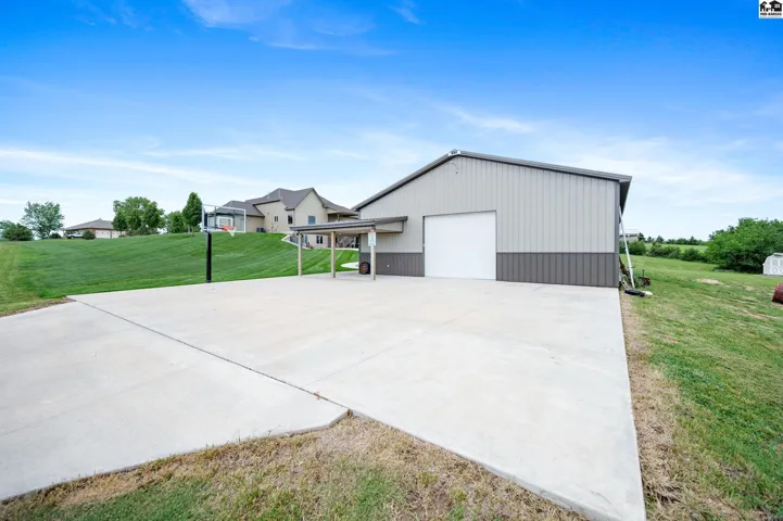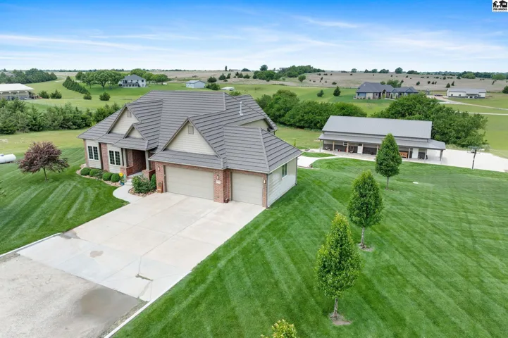 +"PublicRemarks": "Welcome to this stunning 2013 custom built ranch-style home with metal roof. Sitting on 2.8 acres near the Pratt County Lake, this beautiful home is ready for its new owners! This home features three spacious main floor bedrooms, including a luxurious primary suite with large walk-in closet, private en-suite full bathroom with double vanity, separate water closet and direct access to covered back deck. The main floor also features a full bathroom adjacent to the two remaining main floor bedrooms, an open living room that flows into dining and kitchen which boasts granite counters, two ovens, large windows to allow the gorgeous views and an abundance of natural light inside. The main floor also features a large walk-in pantry, powder bath off the attached three car garage and perfectly placed coat/storage closets. Heading downstairs you will find the beautifully designed walk-out basement that just like the upstairs, features plenty of windows to allow the light and views, tall ceilings and a fantastic layout. Spacious family/rec room, dedicated home theater, two additional bedrooms, another full bathroom, safe room, and ample storage all flow together downstairs seamlessly. Outside is sure to be your retreat featuring a 2024 installed in-ground 40x20 heated pool with automatic cover, 2020 built 65x50 shed with a 2023 finished interior living space complete with a mini-split, wet bar and powder bath perfect for the swimmers use, party hosting or your own personal hang out!"