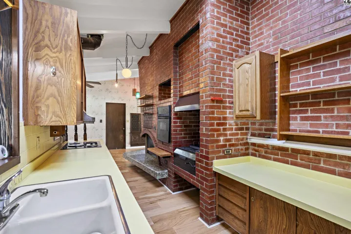 +"PublicRemarks": "Unique split level home set on a large corner lot with tons of space and character!!! Plenty of parking with an attached two car garage as well. As you walk up to the covered front porch enjoy the quaint brick walkway covered by the mature trees welcoming you to this spacious brick home! As you enter the home the NEW WOOD FLOORS and great features highlight the unique charm throughout! To the right of the front door is the living space with HUGE floor to ceiling windows allowing natural light to pour in! In the living room sits a two-sided fireplace with a tile hearth and wrapped in brick. Off the living space is the dining area creating an open flow right into the functional kitchen with one of a kind features including a wood burning grill inside!!! Right off the kitchen is the main floor laundry, allowing for convenience and functionality on the main floor! Out the backdoor from the kitchen is the glassed in sunporch giving year round enjoyment of this great backyard! The two car attached garage is included on the main floor right off the living/dining area. Upstairs includes a spacious primary bedroom with an attached full bathroom plus a BALCONY, a second bedroom and a second bathroom! Down the stairs the walk out basement showcases an additional living room that walks out to a separate covered patio!!! The lower level includes a bedroom and a half bathroom! Great space, unique layout and fantastic updates! Owner is a Licensed Real Estate Agent in State of Kansas."