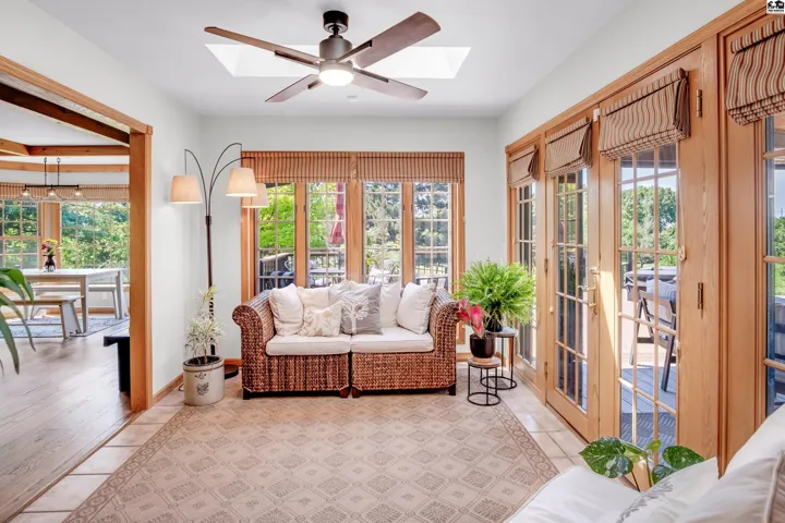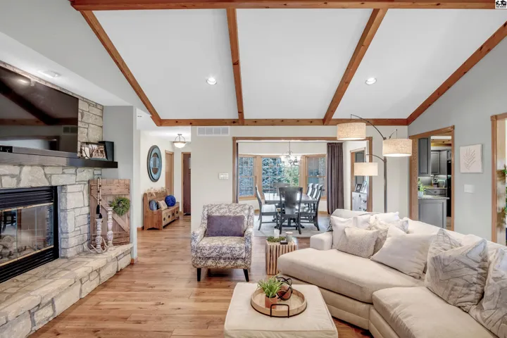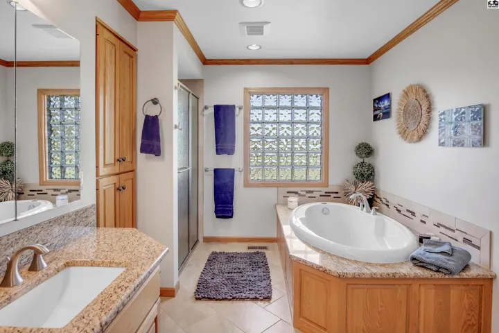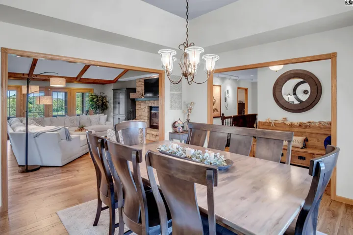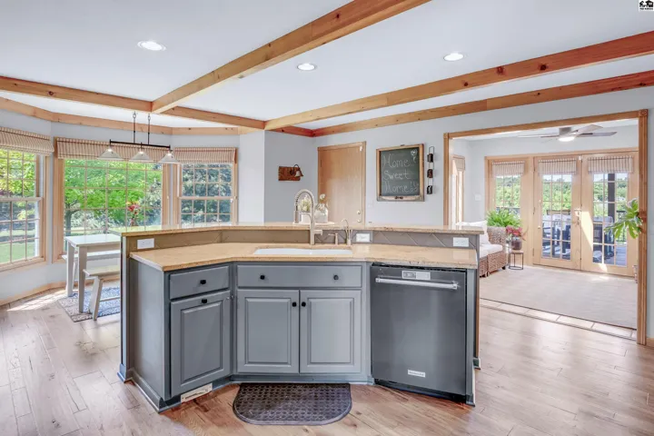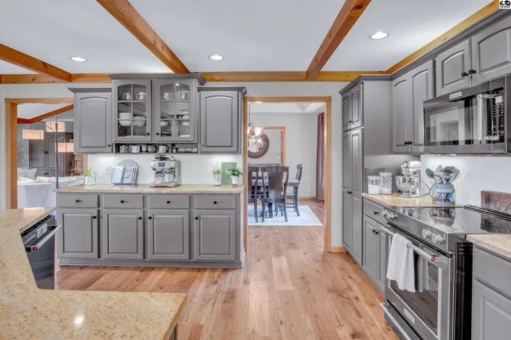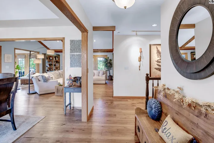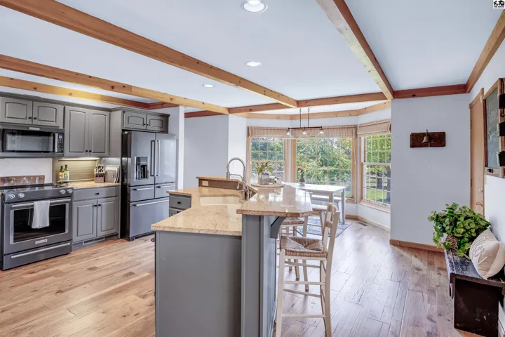 +"PublicRemarks": "Exquisite country property on 4 Acres just minutes from McPherson & Golf Courses. Experience refined country living at its best in this stunning 4,000+ square foot estate, perfectly positioned on 4 picturesque acres just outside McPherson. Surrounded by rolling hills and unforgettable sunsets, this home combines elegant design with the tranquility of wide-open space. Step inside to an inviting open-concept floor plan showcasing rich hardwood flooring. The gourmet kitchen is a chef’s dream—featuring a large island, abundant custom cabinetry, and ample space for both casual dining and entertaining. The adjoining living area centers around a cozy fireplace, creating a warm yet sophisticated atmosphere. The primary suite has been newly remodeled offering a serene escape with luxurious finishes including a heated floors in the bath. The lower level extends the living space with a spacious family and recreation room, kitchenette, and two additional bedrooms—ideal for guests or extended family. Step out onto the expansive covered deck and take in breathtaking panoramic views of the countryside—perfect for evening gatherings or quiet mornings with coffee. Completing this exceptional property is a three-car garage plus a brand-new shop, offering endless possibilities for storage, hobbies, or workspace."
