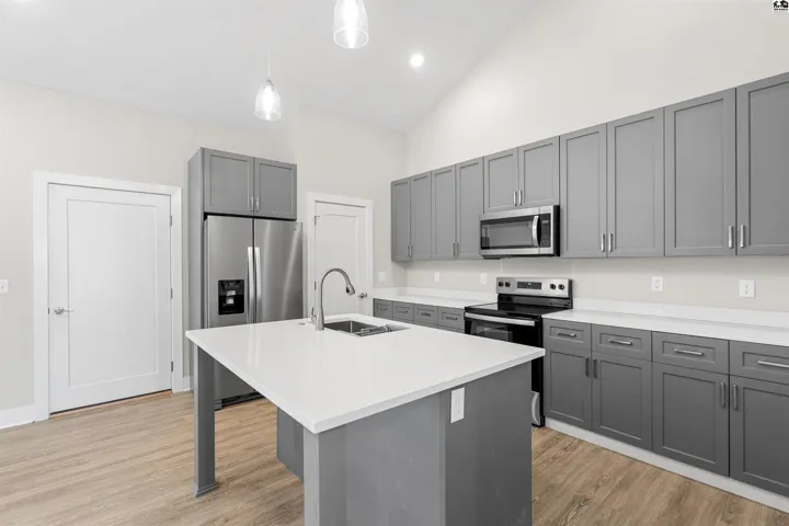 +"PublicRemarks": "Amazing floor plan and design! Enjoy main floor living with zero entry and an open floor plan. Vaulted ceilings in the great room - open into the kitchen. Breakfast bar with kitchen island, pantry space, and stainless-steel appliances in your kitchen. Main floor laundry with convenient storage. Master suite with zero-entry shower on 1st floor, and 2nd bedroom that is perfect for family, guests or office space. Luxury tile plank flooring throughout living space and carpet in bedrooms. This floor plan features a loft space which has many possible uses. A 2nd generous bedroom upstairs with walk-in closet and a full bathroom for another master option. Sod, sprinkler and landscaping included. Storm shelters in every home. This is the 3-bedroom home you have been waiting for! Fabulous!"