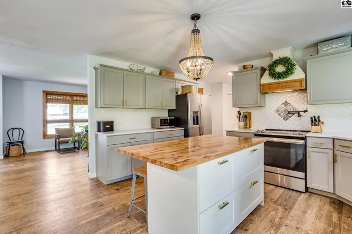 +"PublicRemarks": "Located on a corner lot (.46 acre) this updated ranch style home has a modern farm house vibe. The home features 4 bedrooms + a bonus room, & 3 full baths. You will love the open floor plan and all the natural light that fills the space. You will appreciate the elements that make this home special, such as luxury vinyl flooring and attractive light fixtures. The living room is open to the hearth room and kitchen. There is a center island, attractive cabinets, range, refrigerator, and dishwasher. For extra storage there is a pantry closet adjacent to the kitchen. The main floor has super size laundry/mud room that is nothing short of amazing! The washer and dryer are included. The basement has a large family room, 4th bedroom with an egress window, bonus room, and updated bath. The Hot Water Heater was replaced in 2022 and A/C compressor and A coil were replaced in 2021. Double car garage, fenced rear yard, and under ground sprinkling system. The owner is providing a one year Old Republic Home Warranty Plan for the buyer."