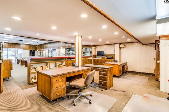 +"PublicRemarks": "Known as the DIAMOND CORNER OF HUTCHINSON this former retail Jewelry store has been a staple in downtown Hutchinson for many years! With a total square footage of 7360sf This Brick with primarily Native stone building is a RARE JEWEL on the CORNER OF MAIN STREET & WEST FIRST AVENUE. Covered entry with approximately 1730 square feet of retail space on the East side of the building. Offices, bathroom on first floor and nice size area that would be perfect that could be converted to lease out for income. Mezzanine (above the jewelry store) has two offices and storage area. Back space of aprox 1875 sf is leased out. The longtime Tenant would like to continue to stay. Tenant has been there for 25 years. Signage on the North side of the building stays with building. SECOND FLOOR WITH 3750SF HAS SO MUCH POTENTIAL! LOFT OR GENERAL STORAGE OR EVEN SMALL VENUE. West side entrance to stairs to 2nd floor. PRE APPROVED BUYERS ONLY. BEING SOLD AS IS IN IT PRESENT CONDITION. SELLER WILL MAKE NO REPAIRS"