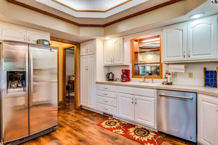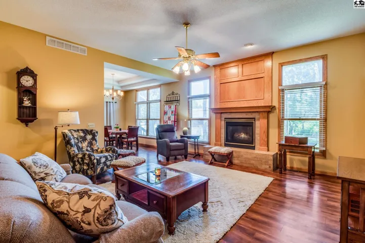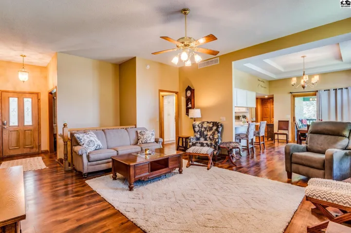 +"PublicRemarks": "What a home! Check out this 4 bedroom 2 1/2 bath ranch with 3 car garage on large corner lot with full finished walk out basement. Beautiful covered deck to enjoy the beautiful yard and privacy! Dining room currently used as office. New flooring on main level and basement. Beautiful main floor living area with gas log fireplace. Large living area in basement with bonus GAME room with so many possibilities. Walk out basement to hot tub. Oversized primary bedroom with walk in closet, soaker tub and separate shower. Main floor laundry with convenient utility sink. Fourth bedroom in basement. Great home in great location. Buhler Schools."