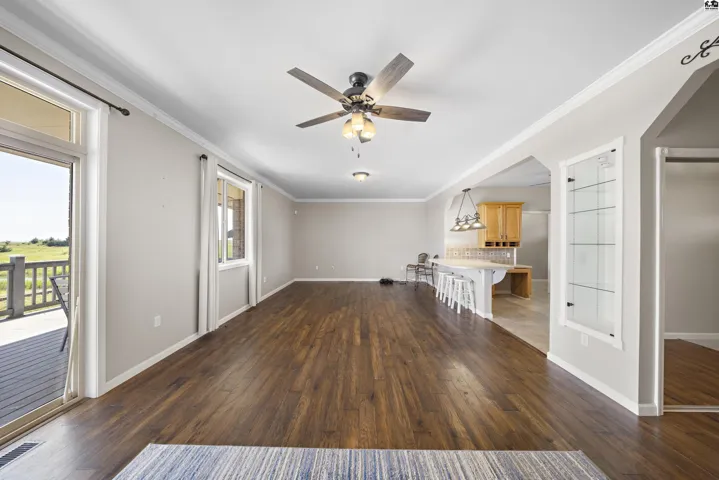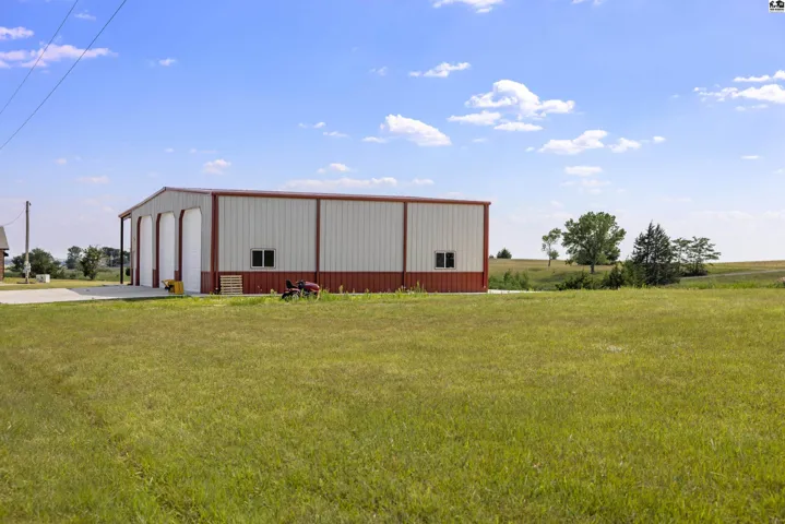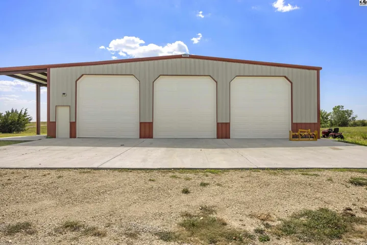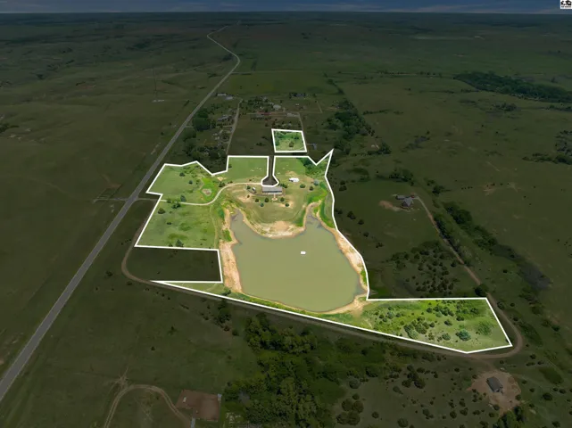 PRIVATE POND ON A WELL, 50X60 INSULATED SHOP WITH A BATHROOM, RV DUMP STATION, GENERATOR AND TWENTY-THREE ACRES!!! Don’t miss this country retreat just 3 miles north of Kanopolis Lake! As you pull into the long private property you are welcomed by rolling hills of green overlooking the HUGE private pond! As you pull up to the house the brand new 50X60 insulated shop welcomes you with double sided extra tall roll up doors perfect for off loading your favorite lake vehicles! Inside the shop you will also find a full bathroom! Walking up to the house the spacious covered front porch and beautiful landscaping invite you home. Inside the updated layout and features make this home a true outdoor dream with comfort and style! An open floor plan with the living, dining and kitchen ensures plenty of space for guests and gatherings! Down the hall are the first and second bedrooms and the hall bathroom, all with great space. At the end of the hall is the enormous primary bedroom with private access to the covered patio and an en-suite bathroom with a jetted tub! Off the kitchen is a large pantry and laundry space leading into the 3 car garage. At the back of the garage is the BAR!!! Equipped with a mini-split, sink, water lines for both a fridge and an ice maker this is the best hangout space around! Out the sliding door the covered back patio, extra-large fire pit and walk way invite you right down to the 13 ACRE POND with a BEACH! All this plus extra outbuildings and acreage to spare!
