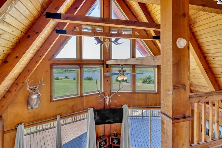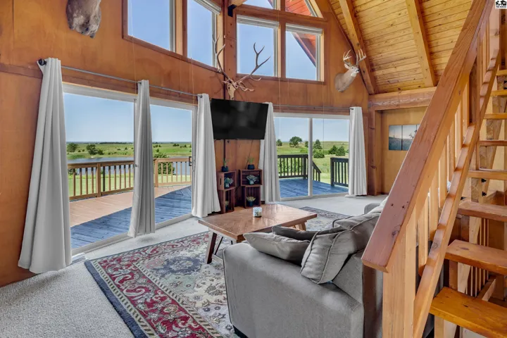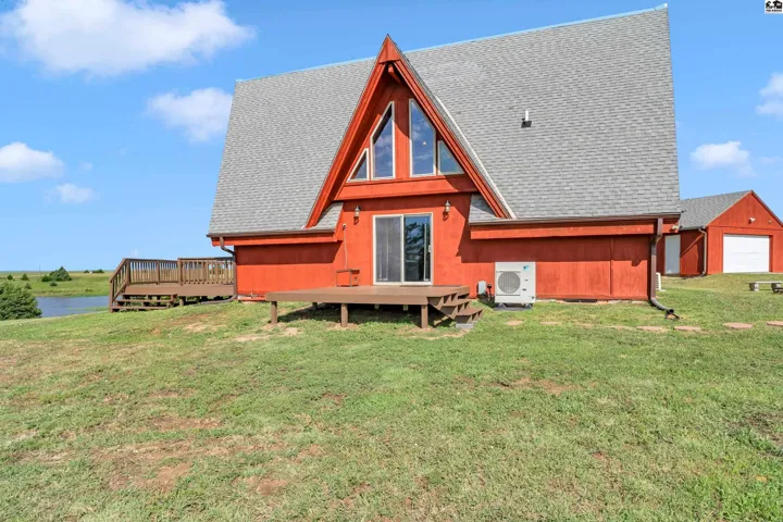 +"PublicRemarks": "Nestled on 1.8 scenic acres, this 2-bedroom, 2-bathroom A-frame home offers unmatched serenity, sweeping views of the Kansas prairie, and fabulous pond views, all just minutes from Kanopolis Lake! Step inside and be welcomed by a stunning great room featuring soaring ceilings and massive windows that frame the beautiful pond and surrounding landscape. Upstairs, the open loft overlooks the living space and offers breathtaking, panoramic views, making it a perfect space for an office, reading nook, or creative studio. Beyond the loft, you’ll find the private primary bedroom complete with an en suite bathroom. The main floor offers a second bedroom, a full bathroom, and an open kitchen and dining area that’s ideal for both everyday living and entertaining. Down stairs you will find 2 bonus rooms and plenty of storage. Step outside to one of three decks where you can sip your morning coffee while watching the sunrise and wildlife pass by or unwind in the evening with a sunset view over the shimmering pond. Whether you’re indoors or out, the scenery and frequent wildlife sightings make this home feel like a private retreat. New septic, HVAC, water heater, exterior paint are just a few of the many upgrades this property has seen in the past 2 years. If you’re dreaming of quiet country living with spectacular views, wildlife, and close to the lake, this is the one. Sellers are open to replacing the roof with a reasonable offer. Call today to make this dream home your reality!"