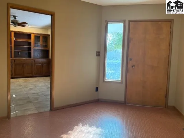 +"PublicRemarks": "Fantastic Lyons home on a quiet street with FOUR bedrooms! See this truly show stopping home with a wrap around porch, RENOVATED kitchen and a private back yard!!! As you pull up to this home sitting center of a quiet winding street with an eye catching front yard and gorgeous brick exterior that welcome you to wrap around porch to enjoy the peace of the neighborhood. Through the front door the updated flooring runs through the main area of the home showcasing the massive fireplace and open concept. Open to the living room is the large dining area and renovated kitchen. GRANITE countertops, updated cabinets and a breakfast bar make this kitchen ideal for entertaining guests, hosting family gatherings or great game days without missing out on the fun!!! Down the hall you will find a nice sized bedroom and the primary bedroom with a HUGE walk in closet and access to the updated hall bathroom! Down the stairs you will find a large living room, an unfinished storage room, an updated bathroom with the laundry and two MASSIVE bedrooms! Bedrooms and bathrooms on both floors and great updates throughout this home truly has it all!!! Out the back door the covered patio space and fenced in backyard facing the west invite you to enjoy beautiful Kansas sunsets and cozy evenings outdoors! Open floor plan, renovated kitchen and bathrooms, four bedrooms, two bathrooms, an attached two car garage, covered patio, wrap around porch and all brick on a quiet street, this home is a must see!!!"