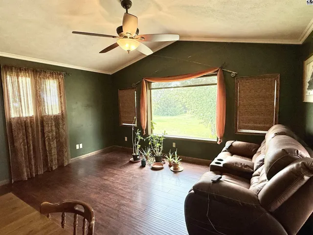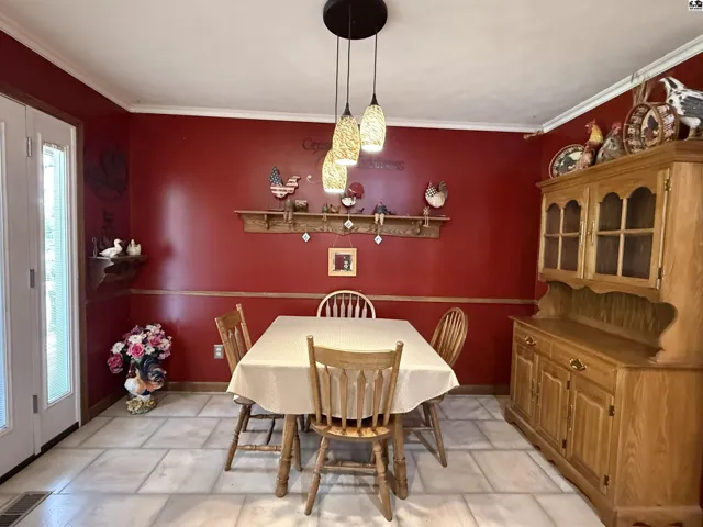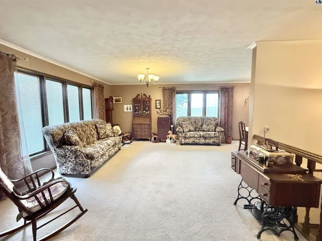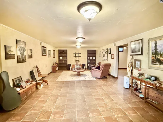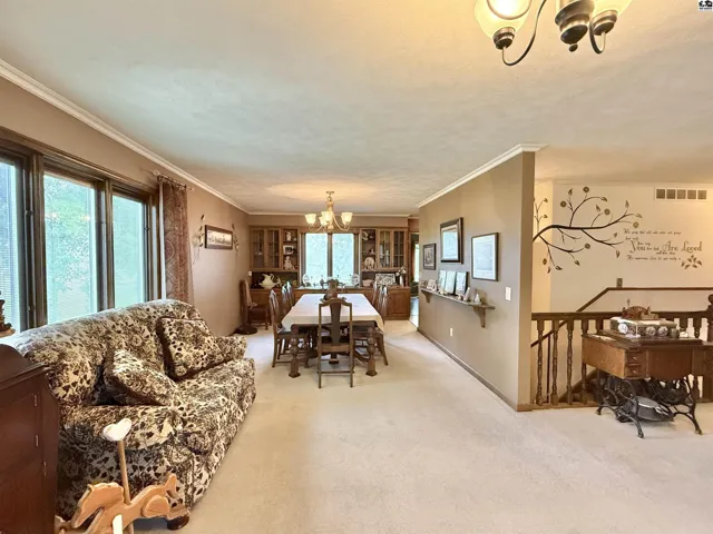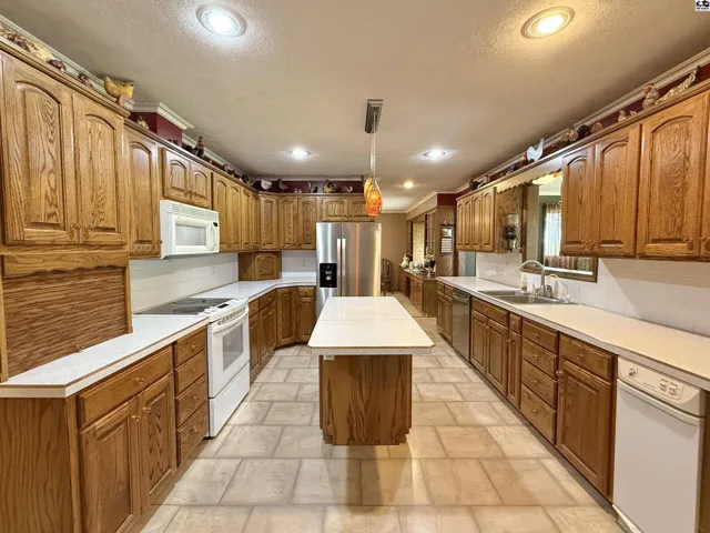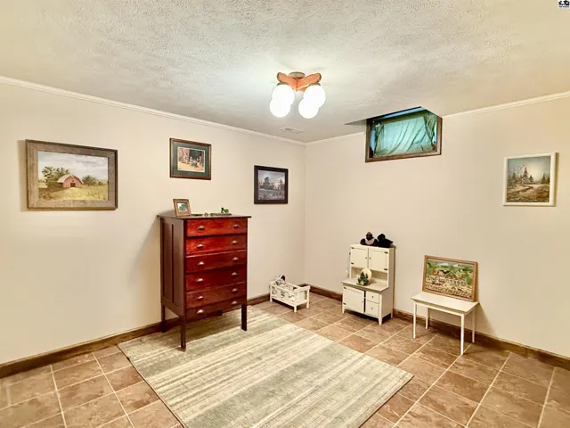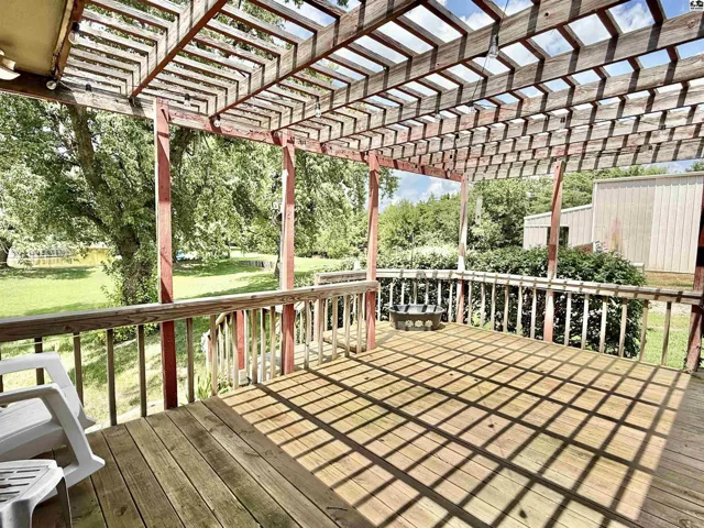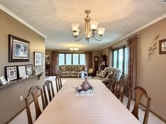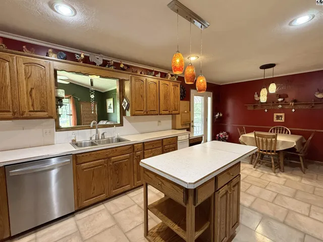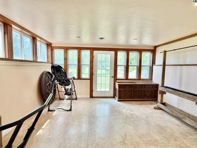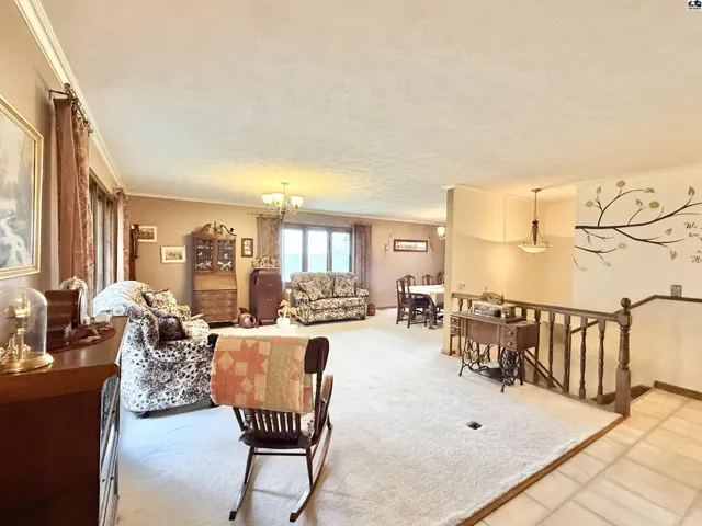 +"PublicRemarks": "This beautiful ranch-style home on a walk-out basement offers the perfect blend of indoor comfort and outdoor adventure, all set on just under three acres. The main floor features a spacious living room, formal dining area, and a large kitchen complete with a center island, pantry, and full appliance package. You'll also find three bedrooms, two full bathrooms, a generous mud/laundry room, and a second living room with stunning views of the stocked pond. The walk-out basement is ideal for entertaining or extended living, offering a large recreation room, one conforming bedroom, two oversized bonus rooms, a full bathroom, two storage rooms (one functioning as a safe room), and a charming sunroom that opens to the backyard. Once you step outside, you may never want to come back in—enjoy relaxing on the covered front porch or the large deck overlooking the water, gather around the brick fire pit, cast a line from the fishing dock, or take a ride on the zip line over the pond. Topping it all off is an impressive 85’ x 48’ insulated shop, offering endless possibilities for hobbies, storage, or work. This property is a true rural retreat with something for everyone."