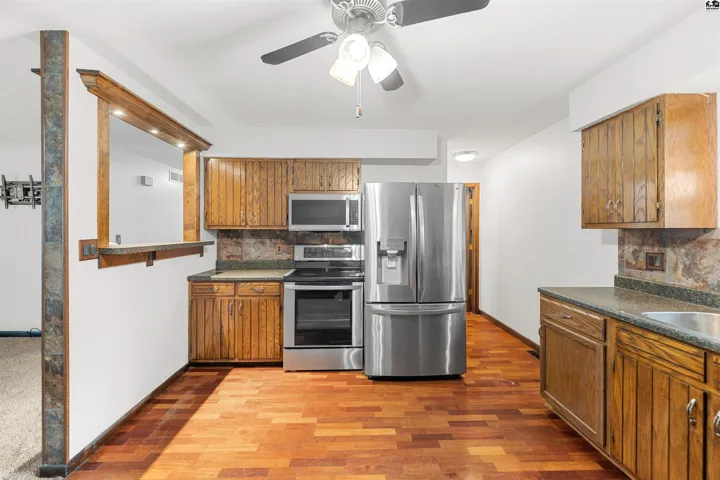 +"PublicRemarks": "GORGEOUSLY remodeled home with FOUR bedrooms, two bathrooms, an oversized garage, newer storage shed, BRAND NEW SIDING and direct access to the PARK!!! As you walk up to the quaint covered front porch the character, charm and care are on display! Through the front door the entry way leads you right into the open concept main floor. The welcoming living room with a decorative fireplace invites friends and family to gather. A large arched opening to the dining room and open kitchen includes everyone in on the fun! The updated flooring and remodeled kitchen make this a turn key home for the next lucky owners! Plenty of cabinet and counter space along with newer appliances allow for culinary creations to be made! Off the living room is the first bedroom with French doors and great natural light. Down the hall are two more large bedrooms and a full, updated bathroom! Off the kitchen and down the stairs is a MASSIVE laundry room with even more space for storage. Currently being used as a primary suite the HUGE basement living room with attached full bathroom offer even more space to enjoy gatherings for holidays, big games or hobbies! The basement bedroom off the living room is currently used as a walk in closet but has plenty of space for a full size bed. Out the back door the well kept patio are offers privacy and reprieve! The oversized one car garage and large storage shed has space for any hobbyists needs! All this plus access to a park out your own backdoor!!!"