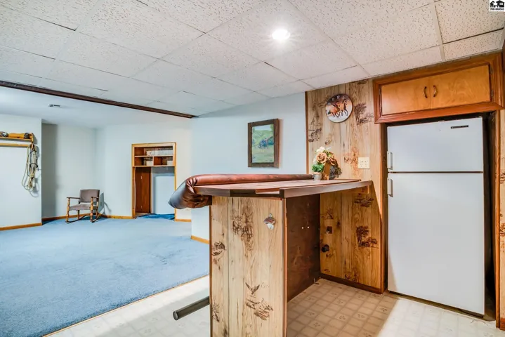 +"PublicRemarks": "MAJOR PRICE IMPROVEMENT! Fantastic Opportunity you won't want to miss!! Just off Black top & 40 minutes from Wichita!! Multiple Updates Throughout! Spacious Solid Custom Built 2 x 6 construction on 6.89 acres with Full Basement & Round Top Outbuilding!! Split Bedroom Plan, Large 14x16 Master Suite, Large Country Kitchen with Breakfast Bar, Solid Wood Cabinetry & Pantry or convert to main floor Laundry**New Roof in 2018, New HVAC in 2021, New Hot Water Tank 2025!! Full finished basement with Stone Woodburning Fireplace, Bar with Plumbing hook ups, Full size Fridge, Bonus Room, Office, Large Storage, and Finished Laundry Area or Move Laundry to Pantry upstairs. Oversized attached Finished Two-Car Garage with plenty of space for vehicles, tools, and projects. Enjoy Relaxing on your Covered Deck or by the Firepit, with wide-open views! Plenty of Room to roam with a fenced pasture, ideal for horses or livestock. Well Water with Water Spigots throughout property. Round Top barn with lean-to and corral adds versatility for equipment storage and farming. Whether you’re looking for a quiet retreat or a property with room for animals and outdoor living, this one checks all the boxes. Don’t miss this rare opportunity to own acreage! Call or Text for your Private Showing Today!"