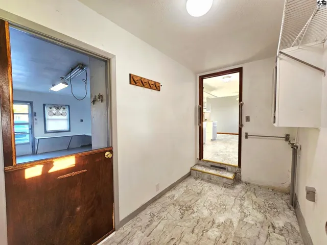 +"PublicRemarks": "Well-maintained 3-bedroom, 1-bath ranch-style home situated on nearly 1 acre. Recent improvements include a new roof and updated vinyl windows. The property is serviced by two wells and a full sprinkler system, making it easy to care for the expansive yard. The backyard features mature shade trees and two storage sheds. Enjoy the convenience of all main floor living with a practical, comfortable layout. A 30×24 detached garage provides ample room for parking, storage, or workshop space. In addition, a versatile bonus room with a separate entrance offers endless possibilities—perfect for a home office, small business, hobby space, or playroom. This gem is tucked away on a quiet dirt road. This property offers peaceful surroundings with plenty of usable space inside and out."