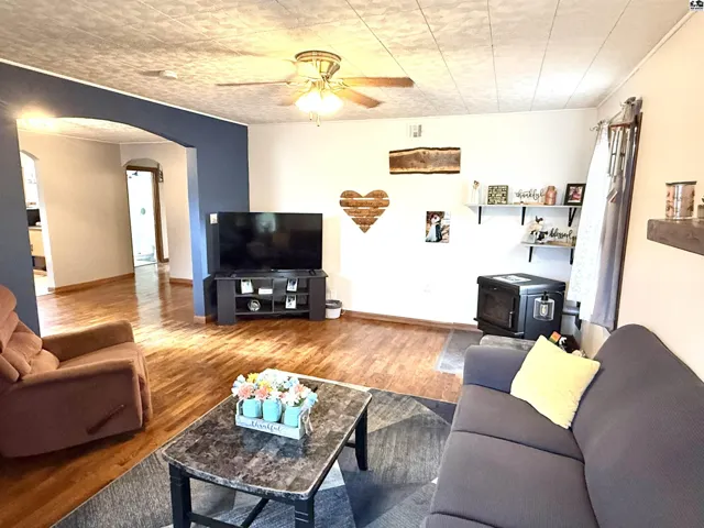 +"PublicRemarks": "Welcome to this charming updated bungalow! This delightful home features a spacious open living room with gorgeous refinished hardwood floors and a pellet stove that keeps the home nice and cozy on those cold winter nights. The dining room is the perfect size for family dinners and entertaining. Architectural arches and built-in bookshelves add a touch of character throughout the home. The kitchen has seen some wonderful upgrades. Additionally, the main floor has two inviting bedrooms and a completely remodeled bathroom. The clean basement is a welcoming area that includes a handy workbench for your projects and a laundry area. The utility and storage rooms in the basement offer practicality. Outside, the driveway leads to a two-car garage. The spacious backyard invites you to relax or entertain on the charming patio, making outdoor gatherings a breeze. The alley access provides a carport that offers covered parking. New improvements include central air and heat in 2023, a Pellet stove in 2023, a Water heater in 2024, Plumbing in 2022, an Electrical panel in 2022, a New roof in 2022, a carport, and a new patio in 2024. The basement has seen some great upgrades. Fresh paint and new carpet have been added throughout. Call for your own showing today."