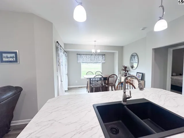 +"PublicRemarks": "Discover the perfect blend of comfort, function, and style in this beautifully maintained ranch-style home, built just TWO years ago. Ideally situated at the end of a quiet cul-de-sac in a highly desirable neighborhood, this property offers privacy, peace, and plenty of space—inside and out. Step inside to an inviting open-concept living area that seamlessly connects the living room, dining space, and kitchen—accented by an abundance of natural light. The kitchen is a dream, equipped with a refrigerator, stove, dishwasher, disposal, microhood, and a spacious walk-in pantry. Main floor laundry adj. The master suite is a peaceful sanctuary, featuring large windows, a generous walk-in closet, and a private bath with a walk-in shower and vanity with ample storage. Two additional bedrooms offer comfortable space and great closets, with a full bath conveniently located nearby, complete with a tub/shower combo. Downstairs, the partially finished basement is full of potential, already partitioned to include two bedrooms, a family room, utility space, & a furnace room. Electrical is in place—just add sheetrock to complete the transformation. A FINISHED bsmt bathroom adds even more value. Enjoy a spacious 3-car attached garage, beautifully landscaped yard with sprinkler system, front porch with railing, and custom touches including a water filtration system with UV light & designer shades. This home is truly move-in ready & waiting for you!. Don’t miss out on this modern ranch gem!"