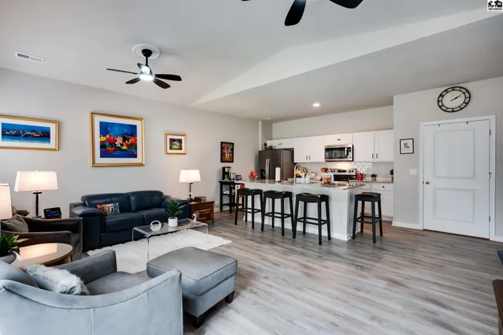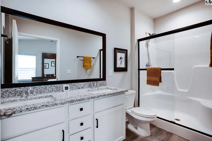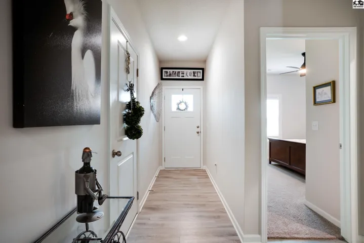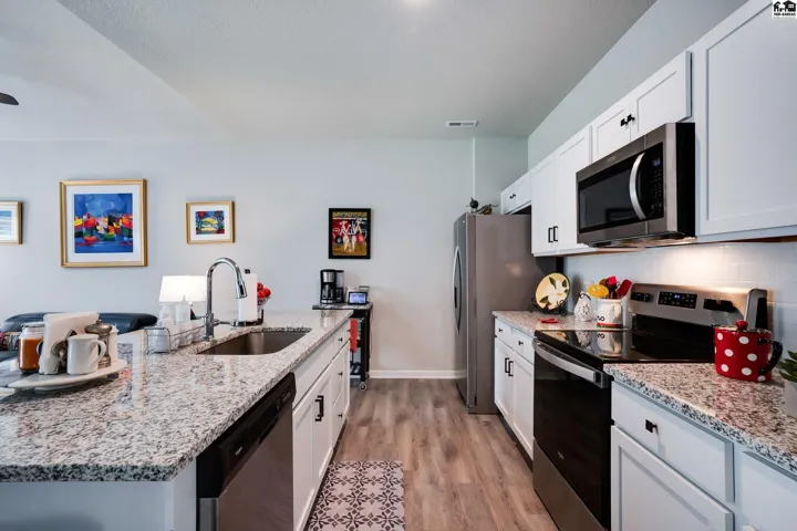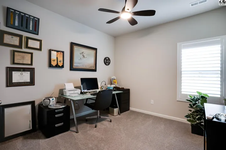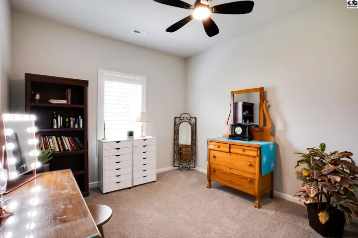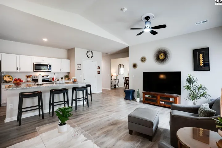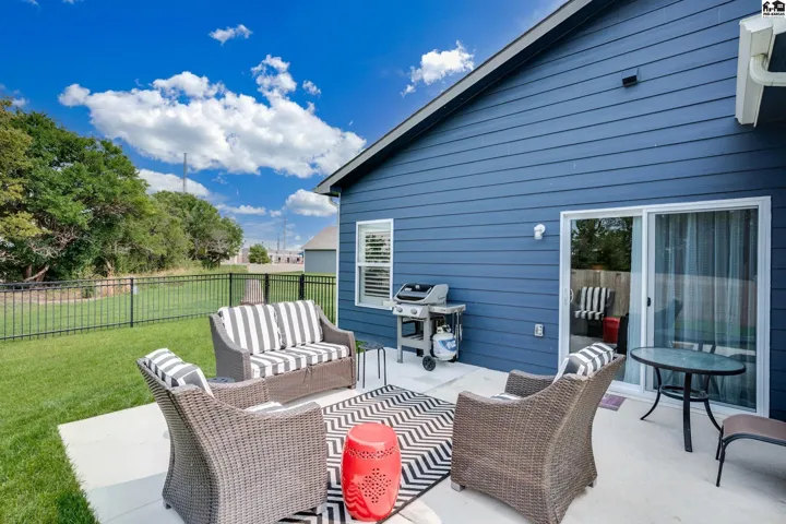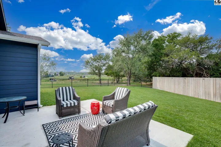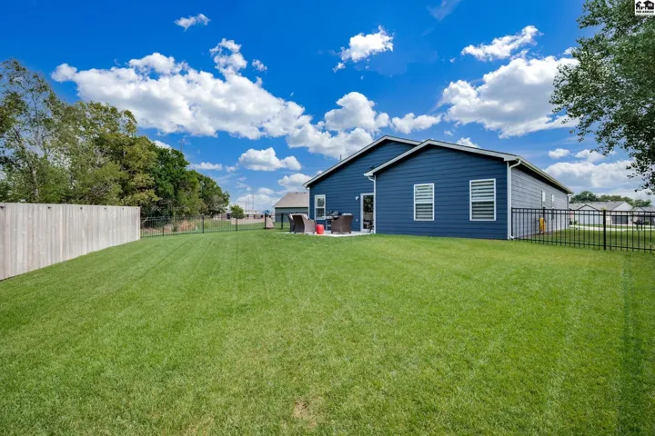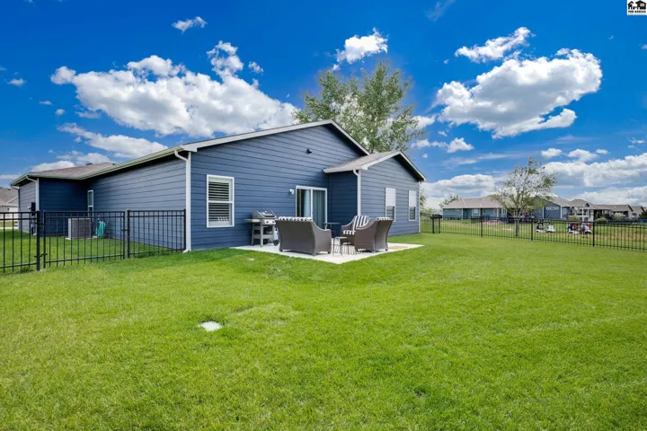 Step into effortless living with this beautiful 2023-built home, all on one level and designed for both comfort and connection. With 4 spacious bedrooms and 2 baths, it offers room to spread out while still feeling warm and inviting. The oversized 2-car garage includes a safe room and has been fully insulated and sheetrocked for function and finish. Every detail has been elevated: plantation blinds, upgraded lighting, custom shower doors, an extended patio for evenings outdoors, and a fenced backyard with irrigation well and underground sprinklers to keep the lawn lush without the high water bill. All appliances are included, so you can move right in and start enjoying the lifestyle this neighborhood is known for. Spend summers at the community pool, stroll the walking paths, or take your golf cart out to Sand Creek Station Golf Course right next door. View the tee box of hole number 16 right from your backyard. Whether you’re gathering with friends, relaxing in your backyard, or exploring the neighborhood, this home offers a perfect blend of modern design and resort-style living.