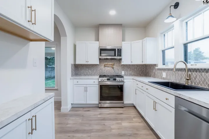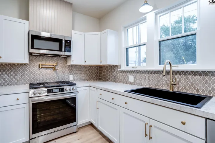 +"PublicRemarks": "Great location! Close to downtown Buhler! Full remodel on this cozy, cute and spacious home! This home is located on a large corner lot that includes fencing and a big wood deck under a beautiful mature tree. No worries on the roof, it was replaced in 2025! Approaching the front door, you are met with a beautiful, corner to corner covered porch with columns that give it that farmhouse feel. Once inside, the space opens up to a large living area that spills over into another living area and designated dining space. You will immediately notice the fresh paint, new flooring, remote ceiling fans etc... The upper level features new carpet throughout, 4 bedrooms, and an updated Master Bath. New ceiling fans up here as well! Back on the main level, you will find another freshly remodeled bathroom and main floor laundry. The kitchen has been completely refreshed as well, including brand new Refrigerator, Oven/Range with pot filler faucet, Dishwasher and Microwave! Other upgrades include: Water Heater 2025, HVAC 2024, and Electrical Panel with wiring upgrades throughout in 2025, and plumbing upgrades. So much NEW in this mature home!! This is a must see! Come quick!"