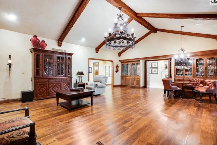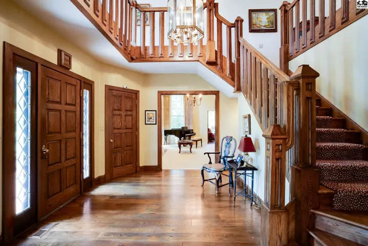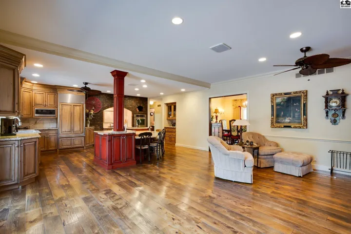 +"PublicRemarks": "SMALL TOWN LIVING AT IT’S BEST! CHECK OUT THIS FABULOUS 5 BEDROOM, 4 FULL AND 2 HALF BATH MASTERPIECE BOASTING OVER 5600 SQUARE FEET. This EXTRAORDINARY home is on 1.6 acres with huge brick patio, circle driveway and so much more. High quality workmanship throughout home. DREAM KITCHEN with granite countertops, built ins, sub zero refrigerator, wolf gas cook top. double ovens and large walk in pantry. Kitchen opens up to large living area perfect for all types of entertaining. Newer windows include beveled and leaded glass upgrades. Second huge large living area with soaring ceilings, fireplace and built in bar. Front formal living area and also separate private office with access to covered patio. Electric blinds and built in bookcases. Main floor primary suite has dual bathrooms and an unbelievable closet/dressing area. Marble floors, large tiled walk in shower, sitting area and a BONUS room off the back used as exercise room. What more could you want? Upstairs has ultra cool landing to display your pictures/art work and 4 LARGE BEDROOMS w/ large closets & TWO FULL BATHS that separate each room. Bonus storage room. Great design for family and guests! Main floor laundry with storage and full bath. High end security system installed. Attached oversized 2 car garage w/ epoxy flooring & summer kitchen for canning. Detached single garage with storage in attic. Beautiful landscaping, stunning brick patio, 3 storage sheds. Hunt nearby at Quivira State Park."