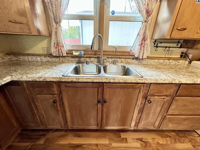 +"PublicRemarks": "You found it! This cute, all brick (low maintenance) 3 bed, 1 bath home in a nice quiet neighborhood is move in ready! Featuring vinyl windows, new hardwood floors, nice kitchen with stainless appliances and a Maytag washer and dryer. In addition to the 3 bedrooms, the home features an office with an outside entrance via French doors. Bordering an alley entry, allows for easy access to the fenced in backyard with high privacy fence and a large 14x24 shed that has electricity, ceiling fans, cabinets and an additional freezer that stays! Come check it out before it’s gone!"