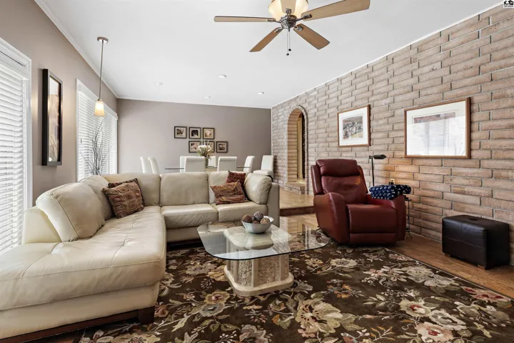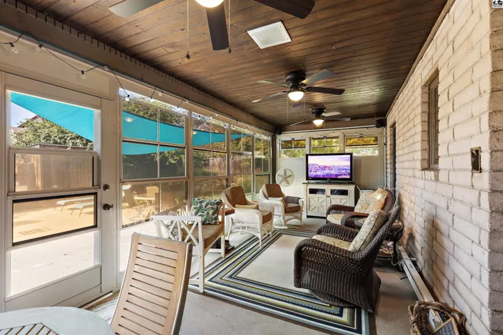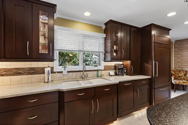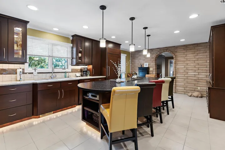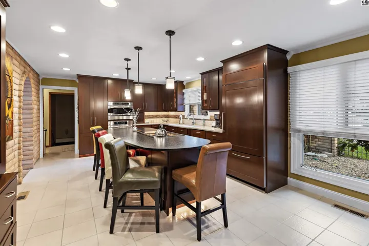 +"PublicRemarks": "From the circle drive to the courtyard, the foyer welcomes with a view to the living room, a stunning brick fireplace and the saltwater inground pool and patio. This three bedroom three bathroom home feels like a resort vacation. Enjoy an elegant Bartel custom kitchen, formal dining, three season sunroom, pantry and mudroom. The kitchen boasts a large quartz island with center cooktop for great conversations or casual dining, all complemented by a full stainless steel appliance package (Sub-Zero fridge, dual ovens), quartz countertops, tiled floor, The formal dining room sports cork flooring and a view of the pool. The spacious living room is wrapped in a custom brick wall, enhanced by the woodburning fireplace, and views of the pool. The primary suite experience includes oak floors, a nice sized closet, walk-in shower, radiant heat in the bath floor and patio doors to the pool. Two more bedrooms served by a hallway bath are spacious, all closets feature custom shelving. Appreciate quartz and onyx treatments in all the bathrooms. Outside, the saltwater pool, a steam sauna and secluded smokeless firepit convo area delight. Dual pane insulated windows, smart thermostat, all electric with air to air heat pump, updated custom lighting throughout, UGS and an oversize two car garage all for the discerning new owner. The partial basement has a small room for office, exercise or crafts and a mechanical room. Meticulously maintained. Come see and fall in love."