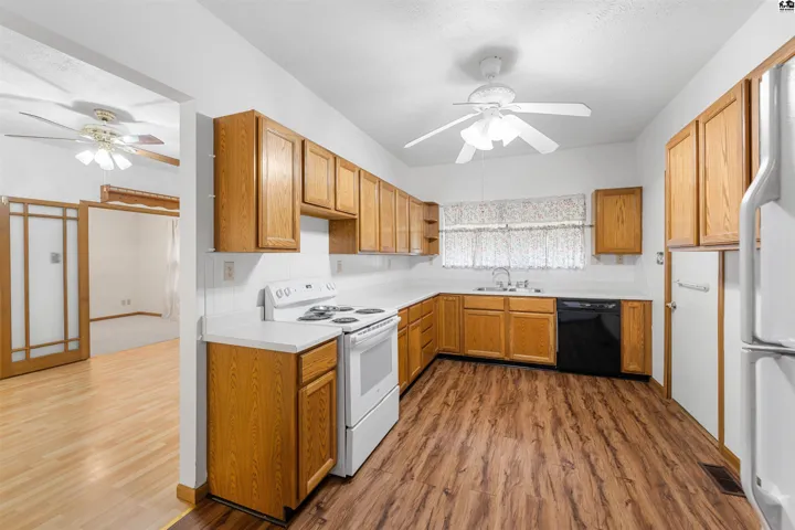 +"PublicRemarks": "GORGEOUSLY remodeled home with FOUR bedrooms, two bathrooms, an oversized garage, newer storage shed, BRAND NEW SIDING and direct access to the PARK!!! As you walk up to the quaint covered front porch the character, charm and care are on display! Through the front door the entry way leads you right into the open concept main floor. The welcoming living room with a decorative fireplace invites friends and family to gather. A large arched opening to the dining room and open kitchen includes everyone in on the fun! The updated flooring and remodeled kitchen make this a turn key home for the next lucky owners! Plenty of cabinet and counter space along with newer appliances allow for culinary creations to be made! Off the living room is the first bedroom with French doors and great natural light. Down the hall are two more large bedrooms and a full, updated bathroom! Off the kitchen and down the stairs is a MASSIVE laundry room with even more space for storage. Currently being used as a primary suite the HUGE basement living room with attached full bathroom offer even more space to enjoy gatherings for holidays, big games or hobbies! The basement bedroom off the living room is currently used as a walk in closet but has plenty of space for a full size bed. Out the back door the well kept patio are offers privacy and reprieve! The oversized one car garage and large storage shed has space for any hobbyists needs! All this plus access to a park out your own backdoor!!!"