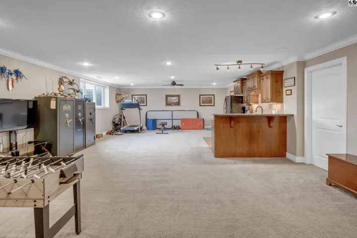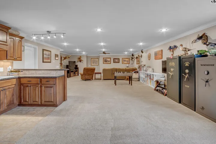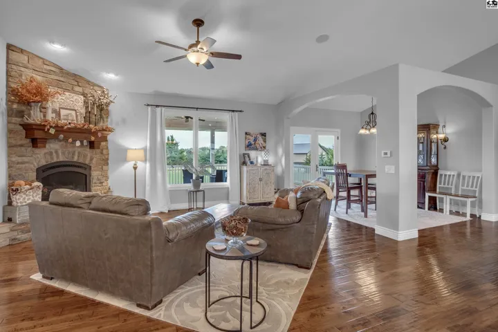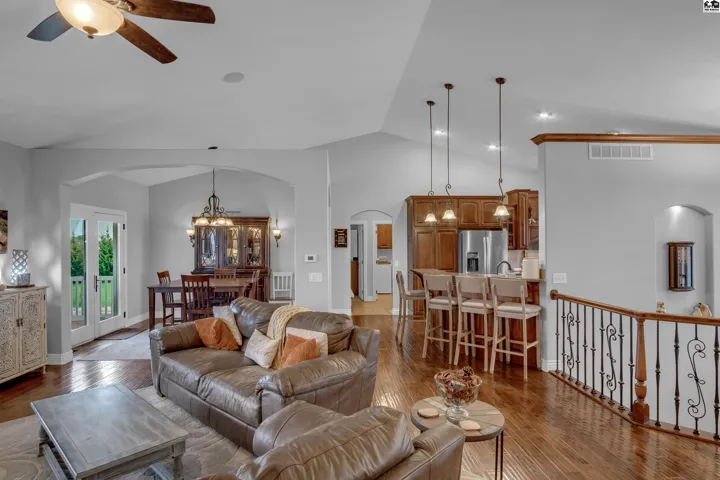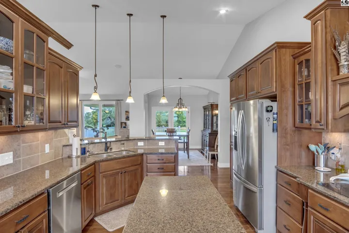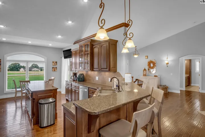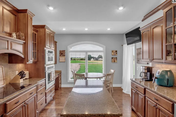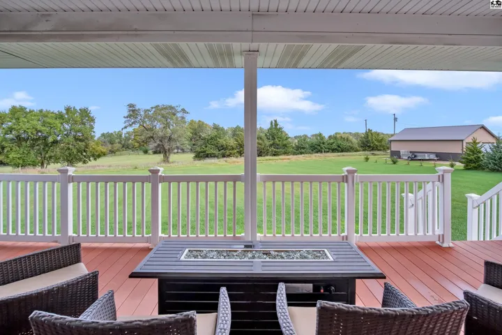 +"PublicRemarks": "Exquisite country property on 4 Acres just minutes from McPherson & Golf Courses. Experience refined country living at its best in this stunning 4,000+ square foot estate, perfectly positioned on 4 picturesque acres just outside McPherson. Surrounded by rolling hills and unforgettable sunsets, this home combines elegant design with the tranquility of wide-open space. Step inside to an inviting open-concept floor plan showcasing rich hardwood flooring. The gourmet kitchen is a chef’s dream—featuring a large island, abundant custom cabinetry, and ample space for both casual dining and entertaining. The adjoining living area centers around a cozy fireplace, creating a warm yet sophisticated atmosphere. The primary suite has been newly remodeled offering a serene escape with luxurious finishes including a heated floors in the bath. The lower level extends the living space with a spacious family and recreation room, kitchenette, and two additional bedrooms—ideal for guests or extended family. Step out onto the expansive covered deck and take in breathtaking panoramic views of the countryside—perfect for evening gatherings or quiet mornings with coffee. Completing this exceptional property is a three-car garage plus a brand-new shop, offering endless possibilities for storage, hobbies, or workspace."