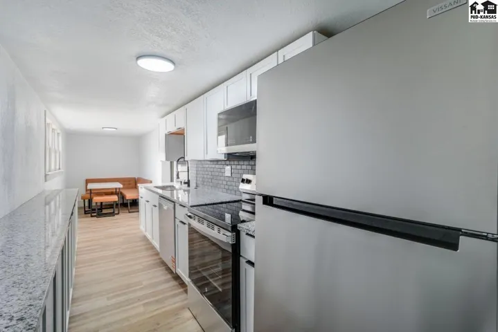 +"PublicRemarks": "This 3-bedroom, 1.5-bath home has just been given a full refresh and is ready for its next owner! Sitting on over half an acre on a corner lot, there’s plenty of space to stretch out and enjoy. Inside, you’ll find a bright and inviting space with all-new updates: HVAC and ductwork, hot water tank, vinyl windows, plumbing, flooring, and fresh paint throughout. The brand-new kitchen is a total highlight, featuring new cabinets, granite countertops, and stainless steel appliances. There’s an attached two-car garage, two patios perfect for relaxing or grilling, and a big, green yard ready for kids, pets, or outdoor get-togethers. With just one neighbor to the west and alley access behind, you’ll love the extra bit of privacy and space. Plus it’s only one block from the school, talk about convenience! If you’re looking for a home that’s been lovingly updated and is ready for you to move right in, this one’s it. Seller is accepting FHA, USDA (0% down), VA, and Conventional lending. One of the seller members is a licensed real estate agent in Kansas."