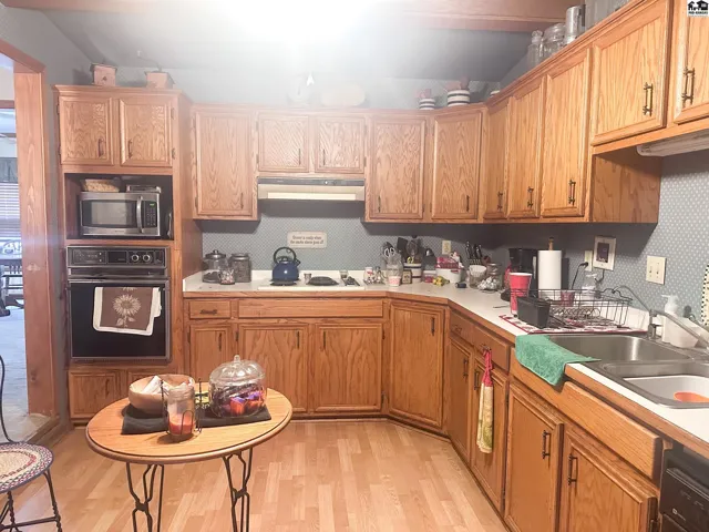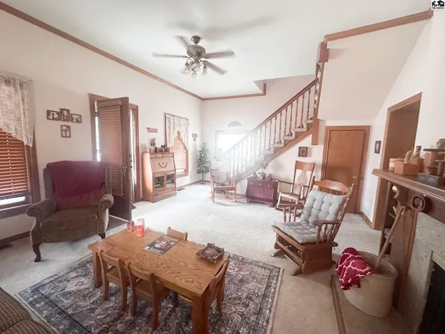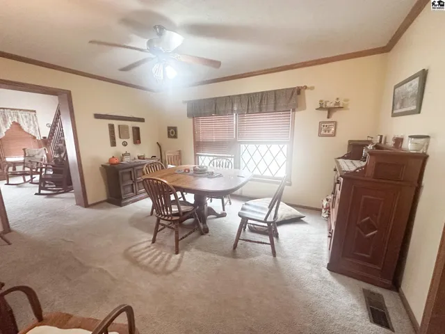 +"PublicRemarks": "Welcome to this charming two-story home perfectly situated on a spacious corner lot in beautiful Pratt, KS. From the moment you step inside, you’ll be captivated by the craftsmanship & warmth of the oak woodwork, elegant fireplace mantel with built-in bookcases, and the open oak staircase that sets the tone for this inviting home. The main floor features a comfortable living room, a formal dining room filled with natural light, and a well-designed kitchen with abundant oak cabinetry, built-in appliances, a pantry, and a sunny dining nook with sliding doors leading to a deck that overlooks the backyard. Adjacent to the kitchen is a versatile family room or den, convenient half bath, main floor laundry, and a mudroom offering easy access to the side yard & att 2 car garage. Upstairs, you’ll find three spacious bedrooms with generous closet space, plus a versatile playroom or fourth bedroom & a full bath with tub/shower combo. The finished basement adds even more living space with a cozy family room featuring an electric fireplace, a bonus room with a closet, full bath & ample storage. The attached garage includes a partitioned heated workshop. Updates include a new roof & guttering (2022), central air & water heater(2025), this home beautifully blends modern comfort with timeless character. While the home has been lovingly lived in, it’s ready for a few finishing touches & minor maintenance items—offering an excellent chance to build instant equity and tailor it to your taste!"