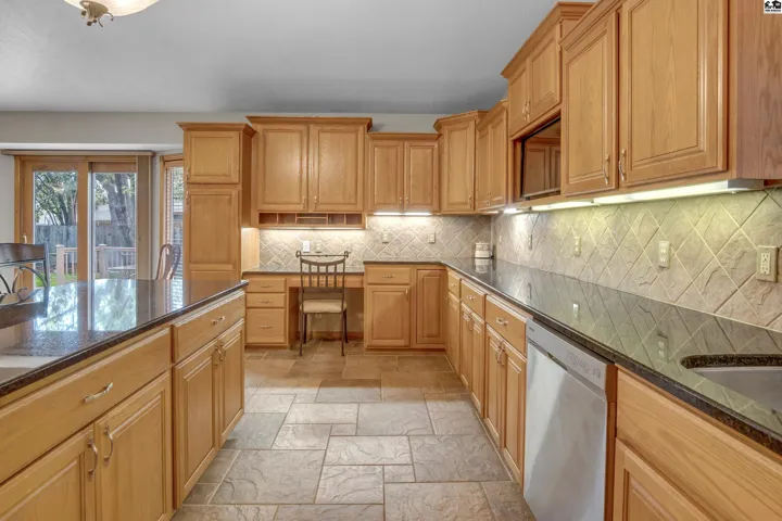 +"PublicRemarks": "You will be impressed with the space and comfort that this 4 bedroom, 3 bath home has to offer. The living room features cathedral ceilings that create a spacious and inviting feel, along with a cozy fireplace. The stunning kitchen is oversized. It features granite countertops, tile backsplash, stainless steel appliances, and a large island with additional seating. The adjoining dining area adds more space to entertain and share family meals. You will love the owner's suite, it's spacious with a high coffered ceiling. The adjoining bathroom offers double sinks, a bath/shower unit, and a walk-in closet. In addition, the main level offers two additional bedrooms, a full bath, and main floor laundry. Enjoying game days or movie nights is made easy with the extra-large basement family room. With the fourth basement bedroom, full bathroom, and a large storage/mechanical room, you will have plenty of room. The outside living space is just as crucial with this home. The large backyard has privacy fencing and offers a beautiful deck that provides a place to rest and relax. The 3-car garage is great for extra vehicles or outdoor toys. The curb appeal is fantastic. The home is located on the north end of McPherson and sits across from Eisenhower grade school. Home will be receiving a new roof, gutter guards, and new garage doors due to the recent storm. Take a look today and be moved in before the holidays."