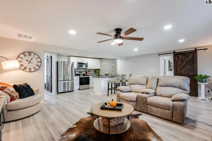 +"PublicRemarks": "COMPLETELY REMODELED THREE BEDROOM, 2 FULL GORGEOUS BATH RANCH WITH OPEN LIVING AND KITCHEN AREA. LARGE FENCED YARD AND NEWLY BUILT (06/25) 40 X 28 DETACHED GARAGE! ROOM FOR ALL YOUR VEHICLES! NEW HEAT AND AIR 2021, NEW WINDOWS, FLOORING, KITCHEN AND BATHROOMS. GREAT LAYOUT TOO! PRIMARY BEDROOM HAS LARGE WALK IN CLOSET AND UPDATED BATHROOM WITH WALK IN SHOWER. SECOND BEDROOM HAS CLOSE ACCESS TO SECOND FULL BATH WITH WALK IN SHOWER TOO! THIRD BEDROOM IS CURRENTLY USED AS AN OFFICE. MUD ROOM IN THE BACK WITH WASHER AND DRYER AND PANTRY. All appliances stay including washer and dryer. Seller has also enlarged back patio and extended for walkway to new garage, added black chain link fence, new water heater (2024) and added 3 returns and sound proofing insulation for extra quiet heat and air. Chicken coop, dog pen and wood raised bed stays. Come see this beautiful home with easy access to Wichita and in Buhler Schools."